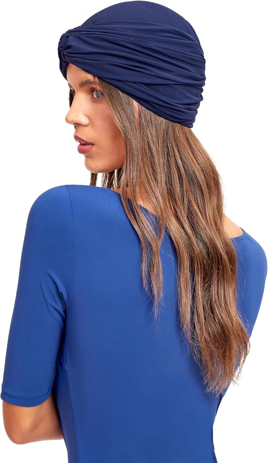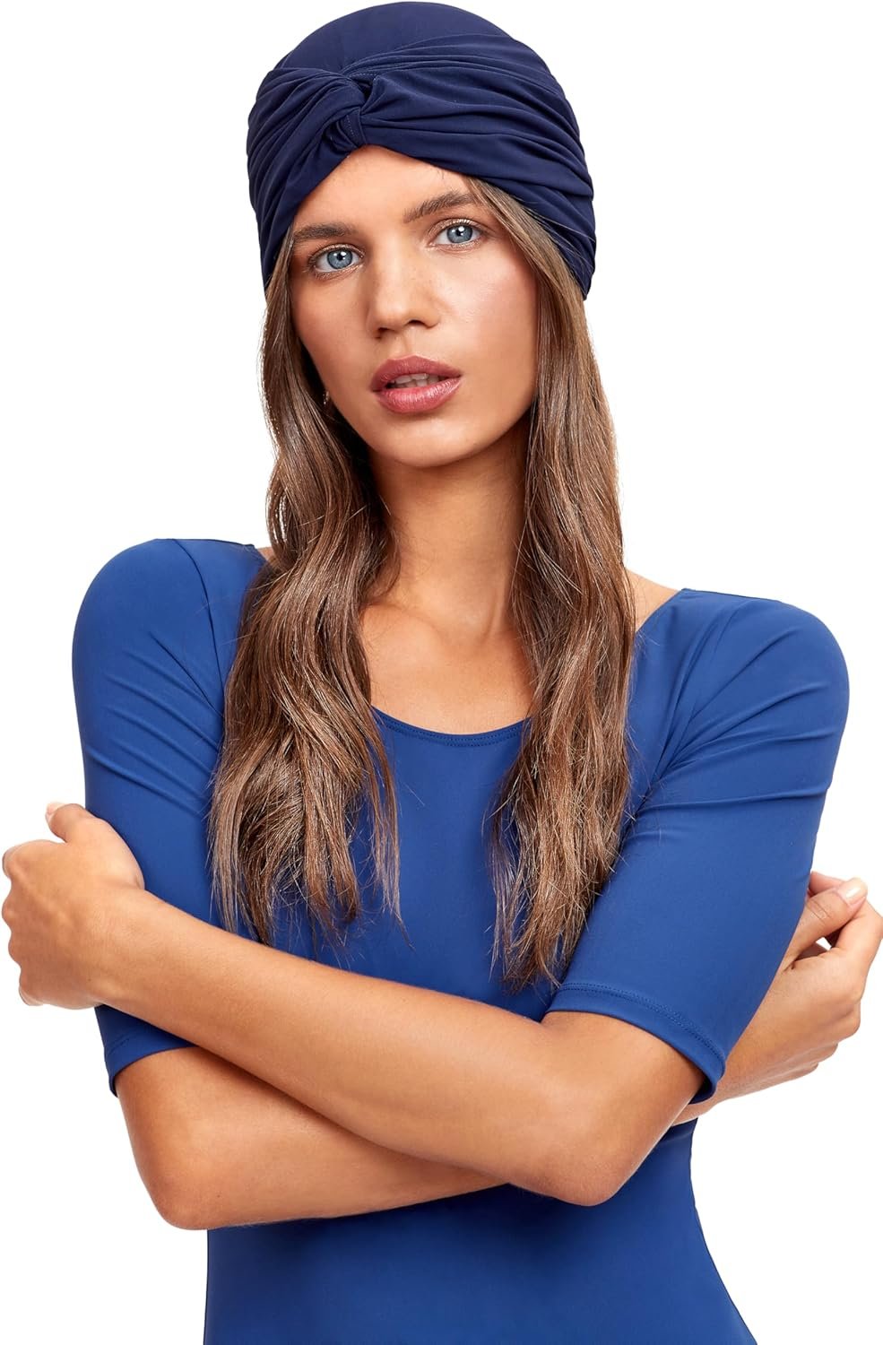 Gottex Women’s Modest Swimwear Lycra Turban with Front Knot Solid Navy Designed for Elegant Full Coverage and Comfort
