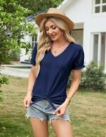 Women Summer Tops Eyelet V-Neck T-Shirts Casual Puff Sleeve Tunic Tops Blouse