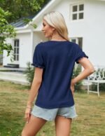 Tie Front Tops for Women V Neck Eyelet Shirts Short Ruffle Sleeve Work Blouse