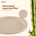 Gracz Pack of 50, Eco friendly; 10″ Inch plate, Sugarcane Fiber, Compostable, Biodegradable, Sturdy, Ok Compost, Halal, BPI Compostable. (10″ – P005)