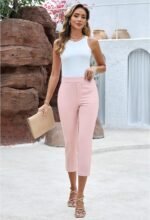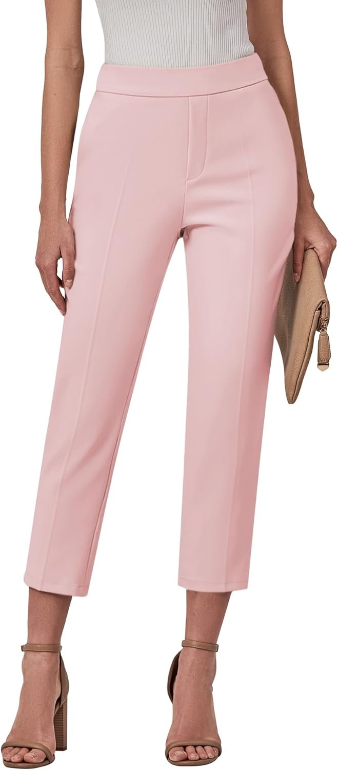 GRAPENT Capri Pants for Women High Waisted Pull On Dress Pants Slim Straight Leg Stretchy Waist Capris Trousers Pants