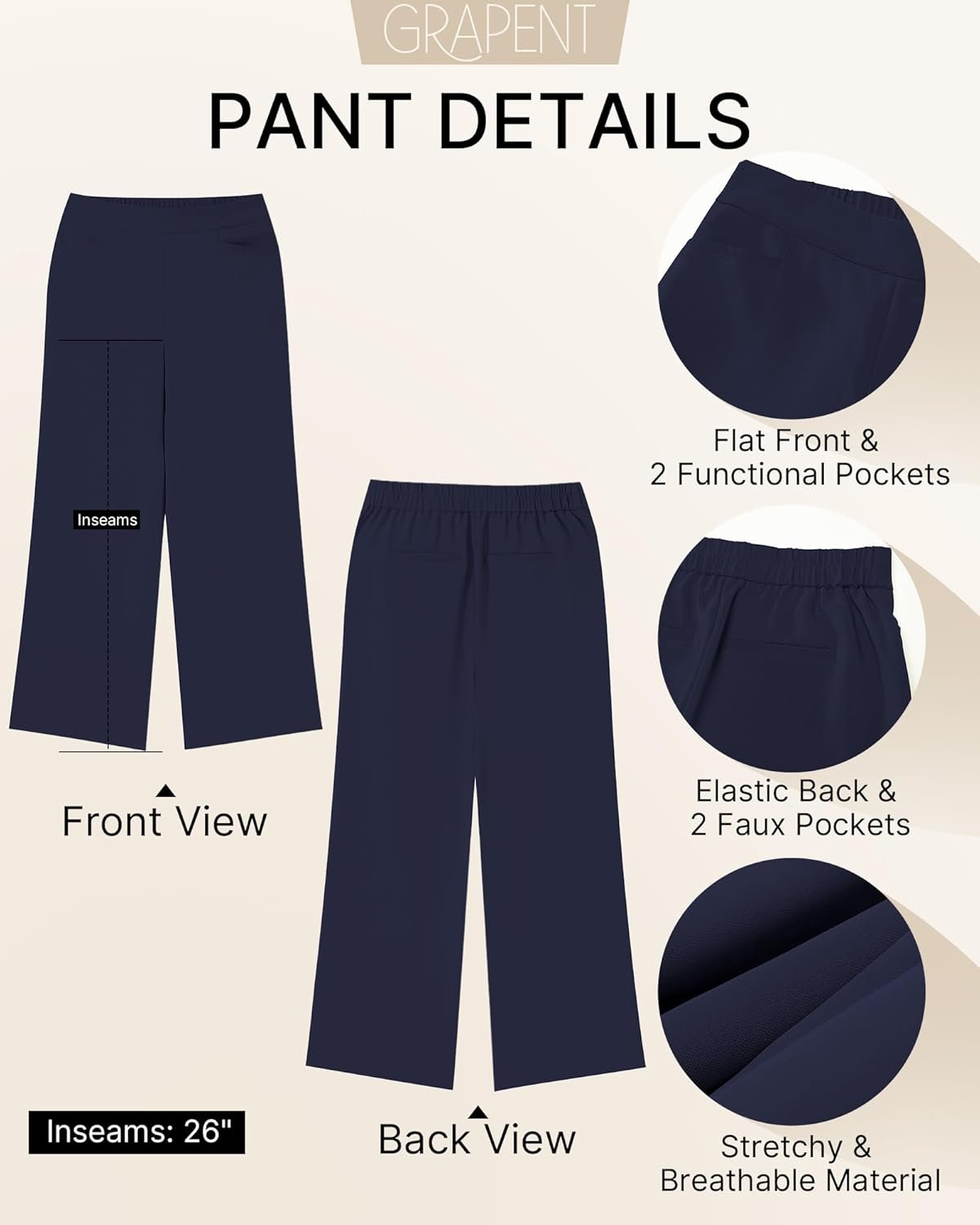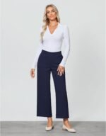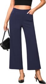 GRAPENT Cropped Pants for Women Trendy Business Casual High Waisted Pull On Wide Leg Stretchy Dress Pants with Pockets