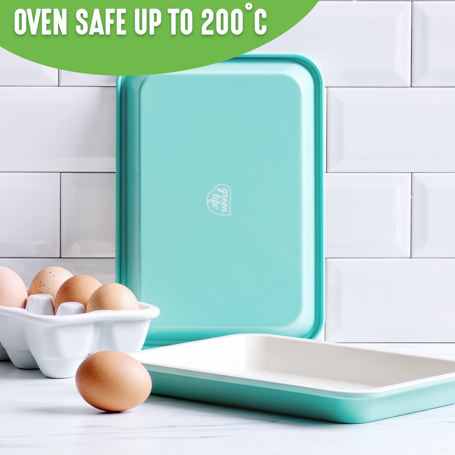 GreenLife Bakeware 13” x 9” Quarter Cookie Sheet, Non-Toxic PFAS-Free Healthy Ceramic Nonstick, Oven Safe to 450°F, Easy Release, Even Heating, Easy Clean, Turquoise