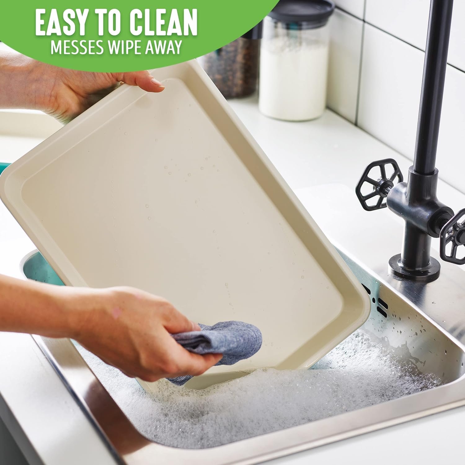 EASY CLEANUP: Wipes clean easily, hand wash only.