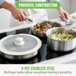 TRI-PLY STAINLESS STEEL: This collection is crafted with two layers of stainless steel and a powerful core to deliver incredible heating and daily durability