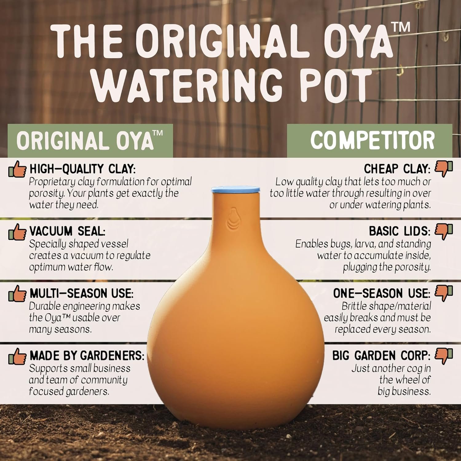 Revolutionize Your Garden with the Oya Watering Pot from GrowOya. Also known as an Olla, our Watering Pot is crafted from a unique and porous clay formula, your ultimate trick saving upto 70% on garden watering.