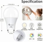 【Energy – Efficient and Durable】: The 9W A19 GU24 LED light bulbs replace 60W halogen bulbs, saving up to 90% on electricity bills.They have a lifespan of over 15,000 hours, which is 10 times longer than halogen and incandescent bulbs.