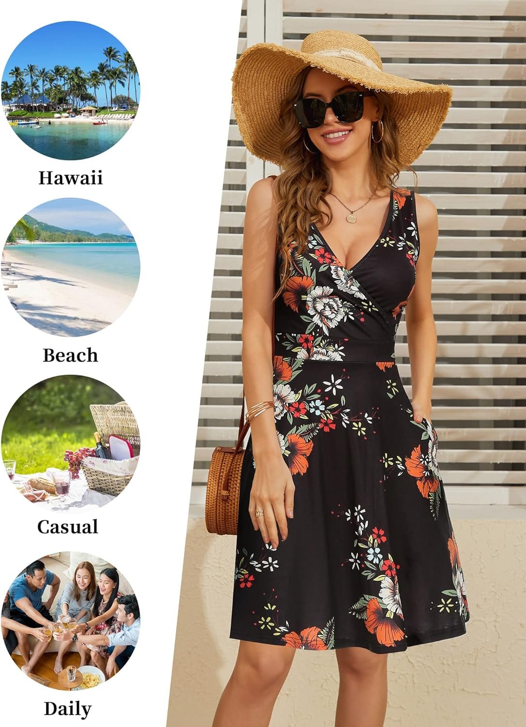 GUBERRY Womens Wrap V Neck Sleeveless Sundress Summer Flare Tank Dress with Pockets …