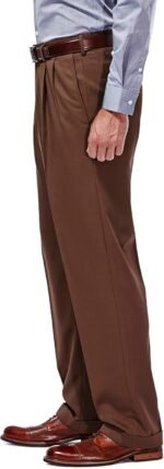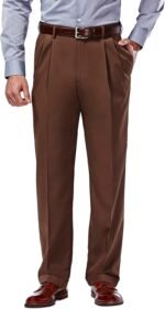 Haggar Men’s Gabardine Hidden Expandable Waistband Classic Fit Pleated Front Dress Pant
