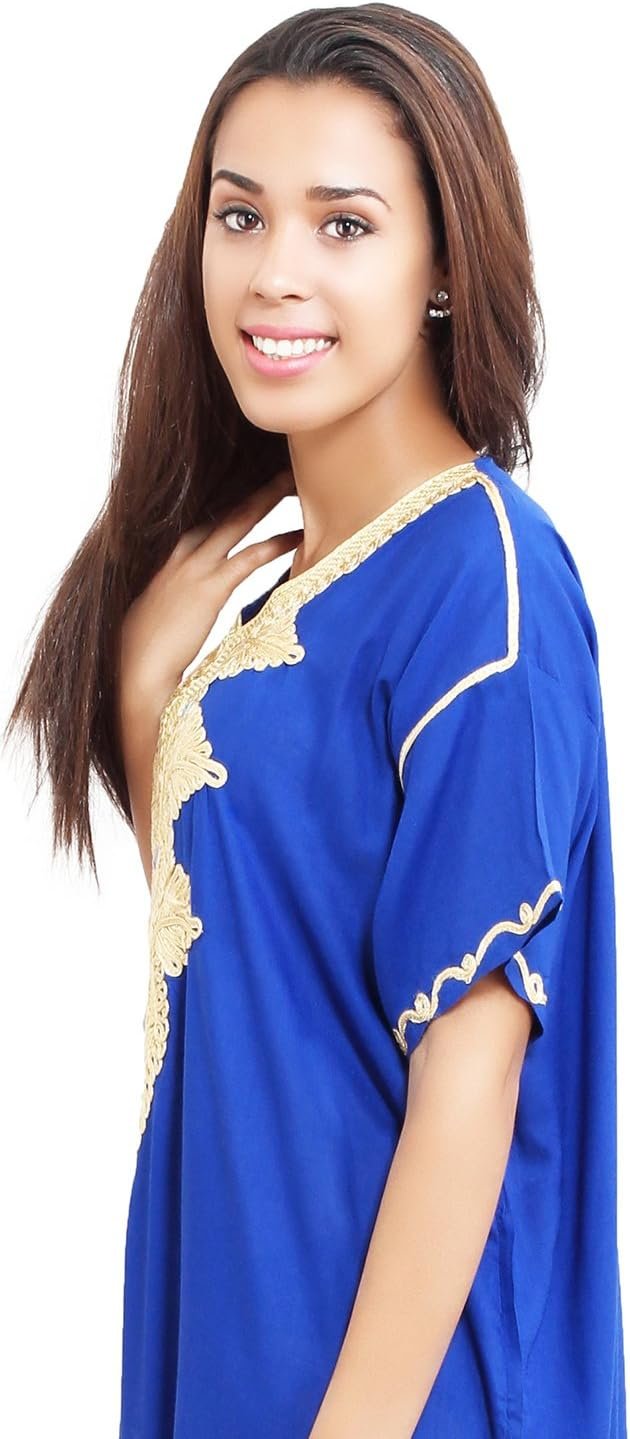 Stylish and comfortable, our Moroccan caftans are pleasing to the eye as well to the touch. This caftan is handmade in Morocco with delicate gold embroideries around the edges and the chest. It gives you a Moroccan charm with a whole lot of elegance. The handcrafted touch of artisan skill creates variations in color, size and design. If buying two of the same item, slight differences should be expected. Note: Color discrepancies may occur between this product and your computer screen