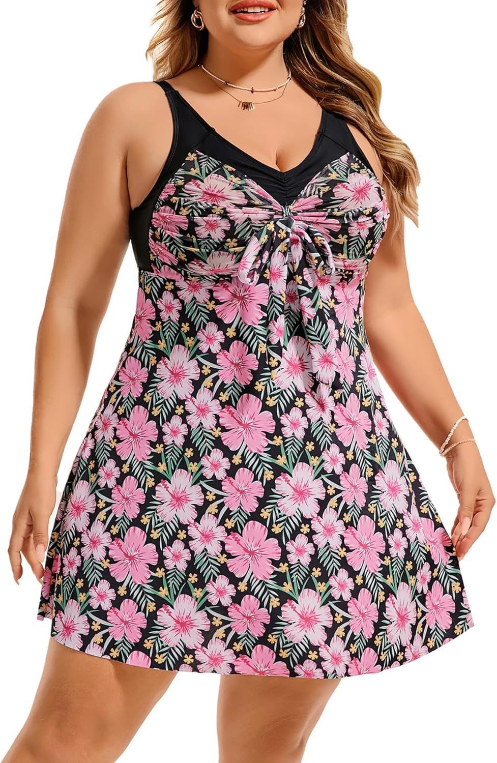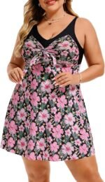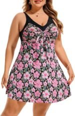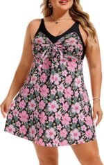 Tankini Swimsuits for Women 2 Piece V Neck Tummy Control Swimwear Womens plus swim dress bathing suitWomens plus swim dress bathing suit