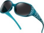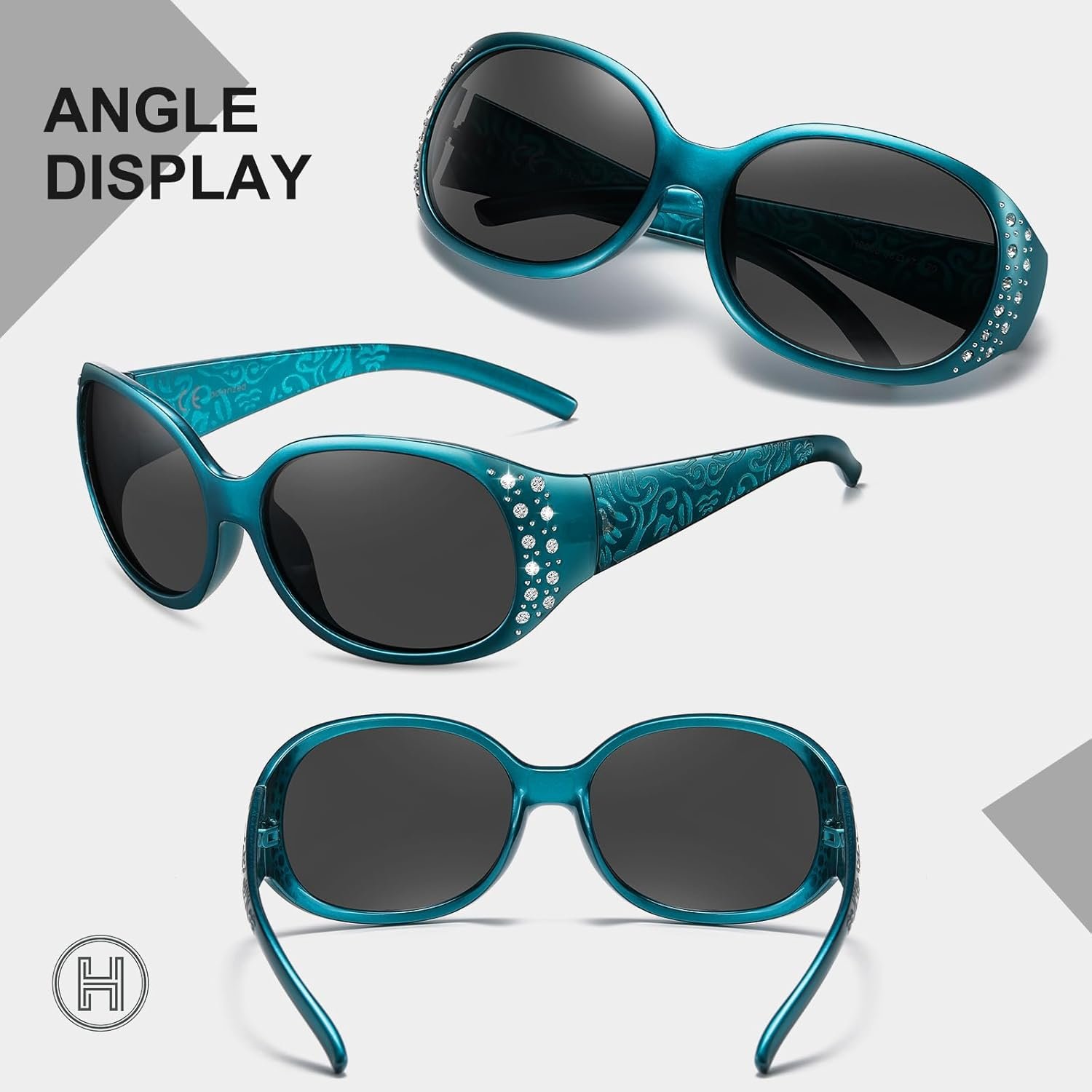 HAOLOTA Polarized Sunglasses for Women, Rhinestone Wrap Around Sunglasses with UV400 Protection