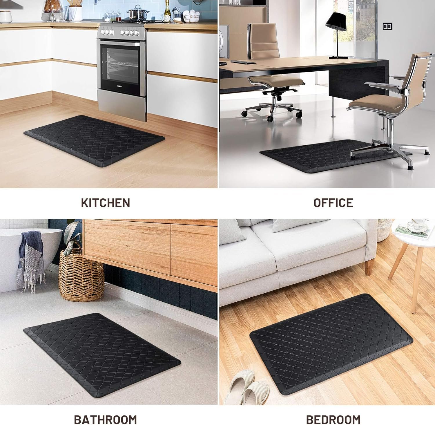WATER RESISTANT:Our anti-fatigue mats are made of premium quality PVC material making it convenient to clean up and will not collect dirt;The material repels water,oils or stains and if anything spills,it makes an effortless clean up;Grid pattern surface never wrinkles and gives a premium texture without collecting debris