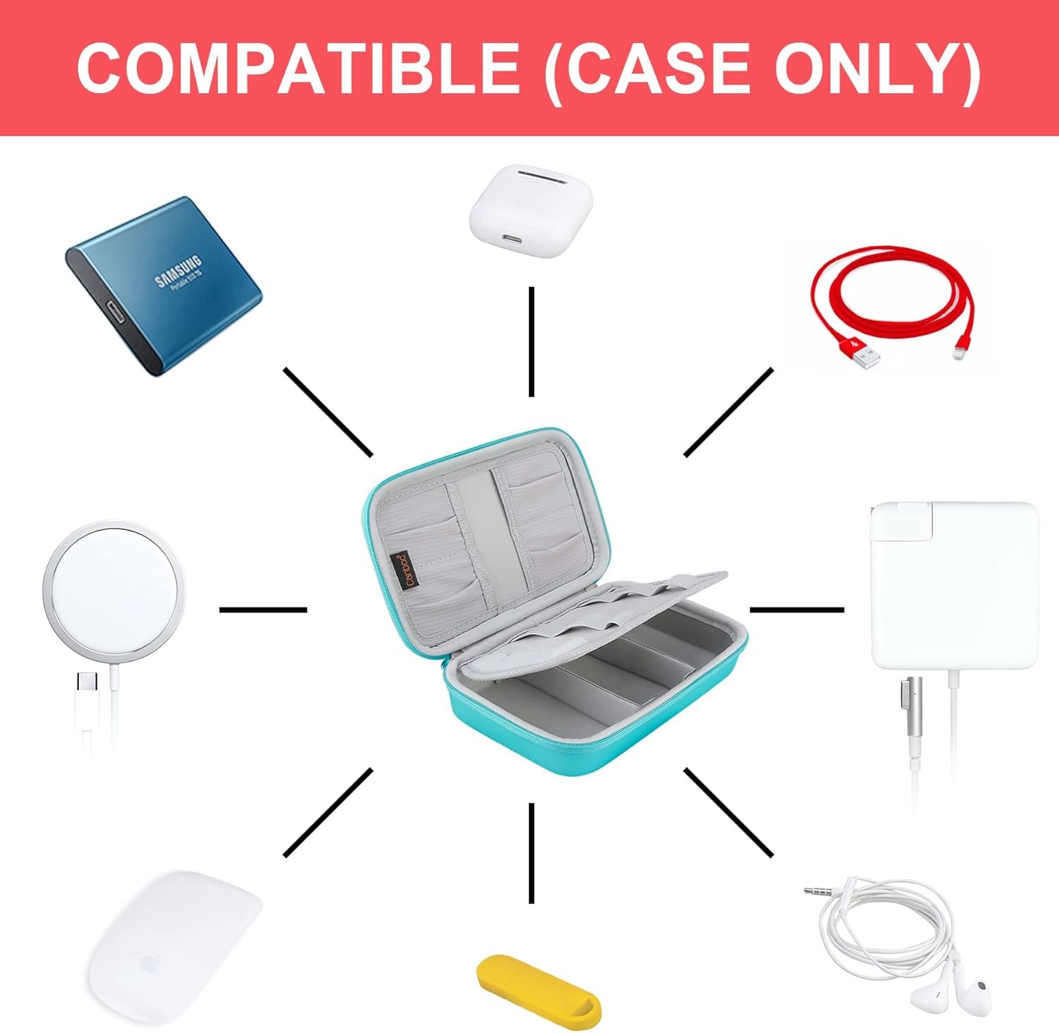 STURDY CONSTRUCTION. This electronics accessories organizer case is made of PU material and high-quality durable EVA, semi-waterproof, drop-resistant and not easy to deform. Strong and durable material with padded foam around to protect all the things inside against scratches, dust, impacts and accidental dropping. Charger case can provide perfect protection for your essentials equipment in daily life and business trip.