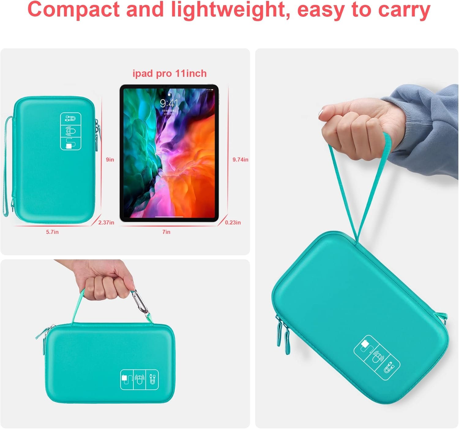 Hard Electronic Organizer Travel Case Electronics Accessories Cable Gadget Wire Storage Bag Double Layer Shockproof Box for Charger, Cord, Flash Drive, Apple Pencil, Power Bank, Turquoise