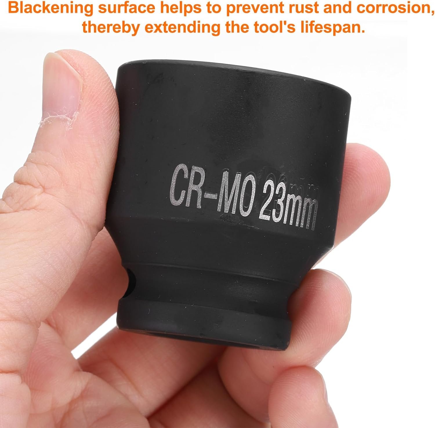 HARFINGTON 4 Point Square Socket 1/2″ Drive 23mm Metric Square Impact Socket CR-MO Blackening Standard Wheel Sockets Pneumatic Socket Tool for Auto Repair Mechanical Maintenance Home Use