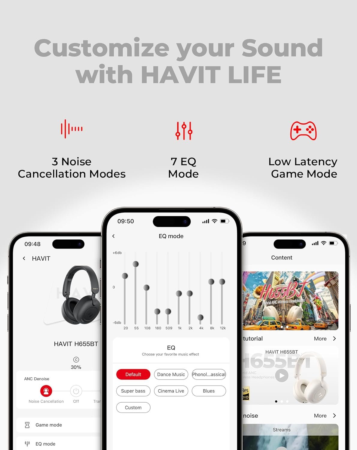HI-RES AUDIO WITH SUPER BASS 40mm custom drivers deliver crisp, CD-quality sound (even better than lossless formats!). Use the HAVIT LIFE app to boost bass, tweak EQ with 6 presets, or create your own signature sound. Perfect for hip-hop, rock, podcasts, and movies!