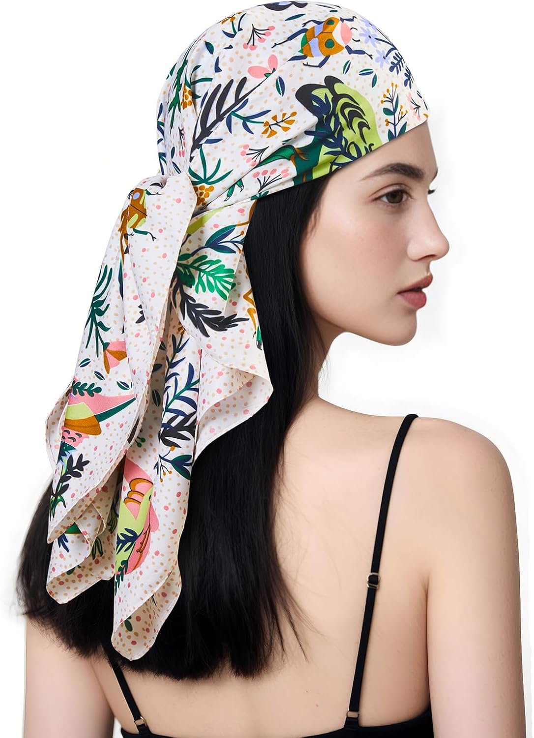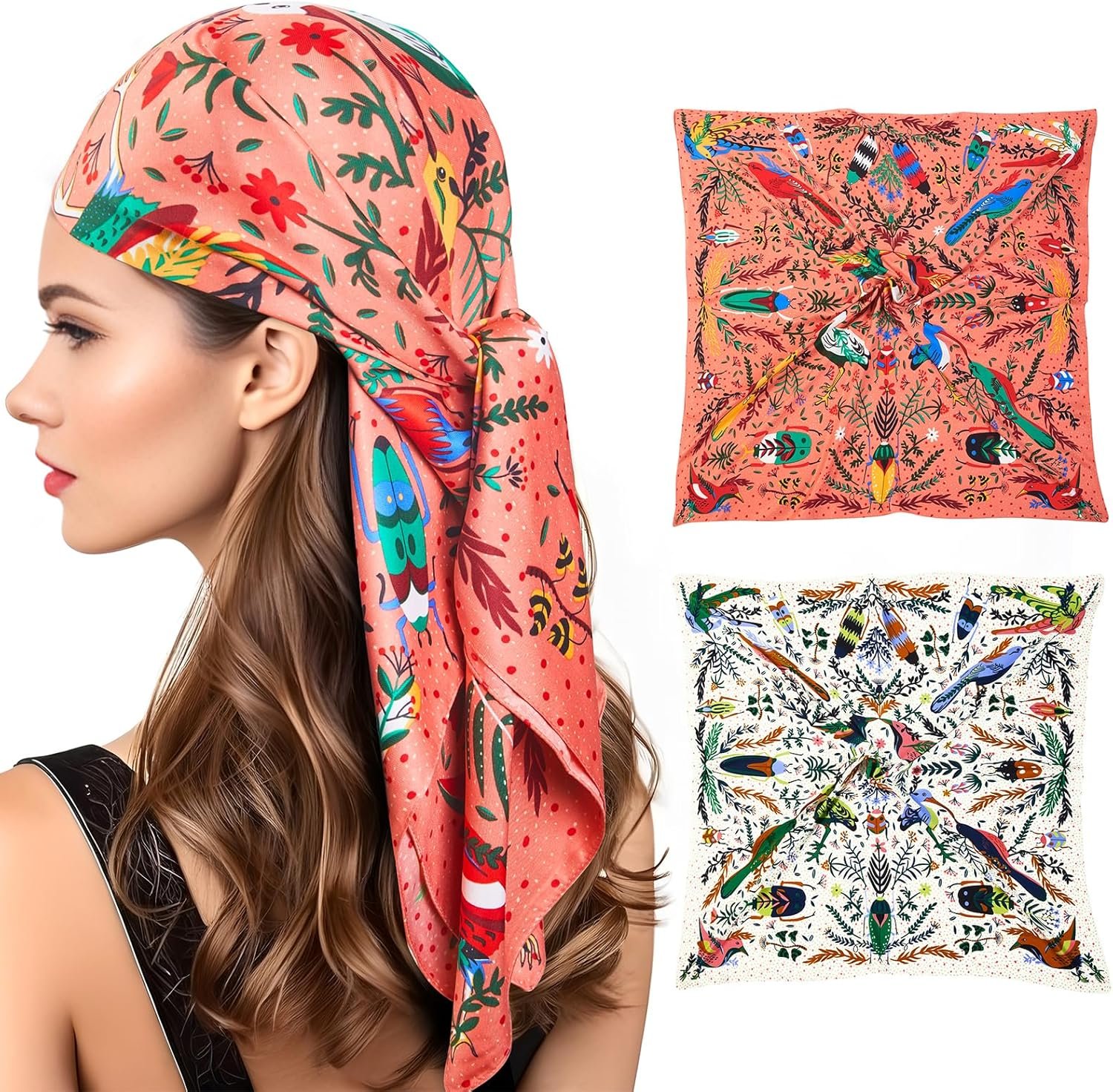Head Scarf for Women – 35″ Square Silk Like Head Scarf for Women’s Hair Scarf Bandanas for Women with Gift 2Pcs