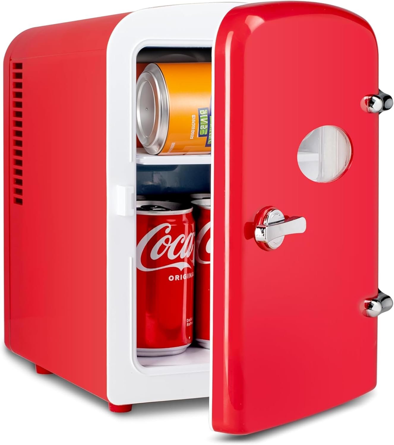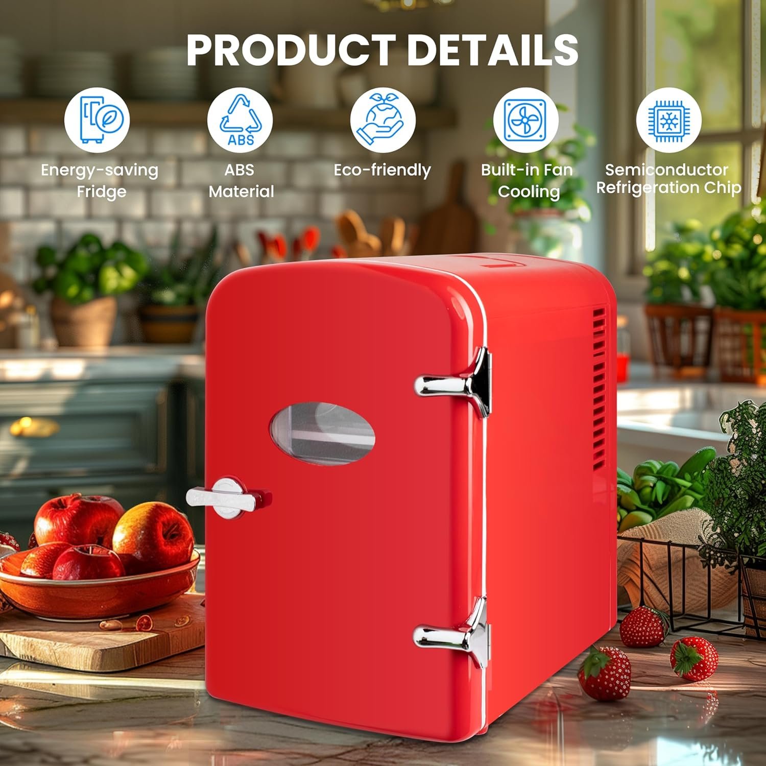 HealSmart Portable Mini Fridge, 4 Liter 6 Can Cooler and Warmer Compact Refrigerators, with Observation Window, 100% Freon-Free & Eco Friendly for Drinks, Food, Medications, Cosmetics, Red