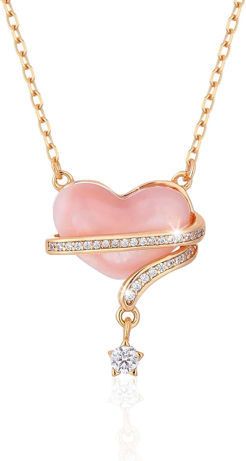 Heart Necklaces for Women 925 Sterling Silver Mother of Pearl Necklace with Pentagonal Pendant 18K Gold Plated Birthday Anniversary Christmas Valentines Gifts for Her