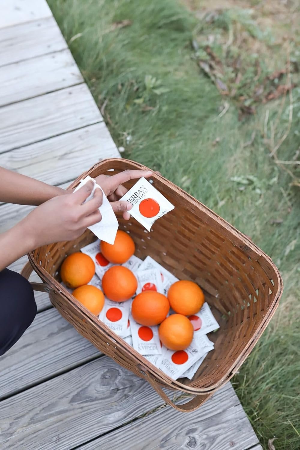 Herban Essentials – Orange Wipes & Towelettes – Essential Oil Wipes for Make Up, Hands, Face & Body – Travel Size Essentials & Toiletries – Natural, Individually Wrapped, Disposable & Moist (20 count)