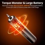 【Long-Lasting 2200mAh Battery】Power through your projects without interruption! The 2200mAh lithium battery provides extended runtime, allowing you to drive up to 500 screws on a single charge. Perfect for prolonged use on construction sites or DIY projects