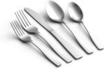Customers find the flatware set attractive and modern. They say it’s a good value for money, a great starter set, and well-made. The flatware is lightweight and easy to clean, with no stains after washing.