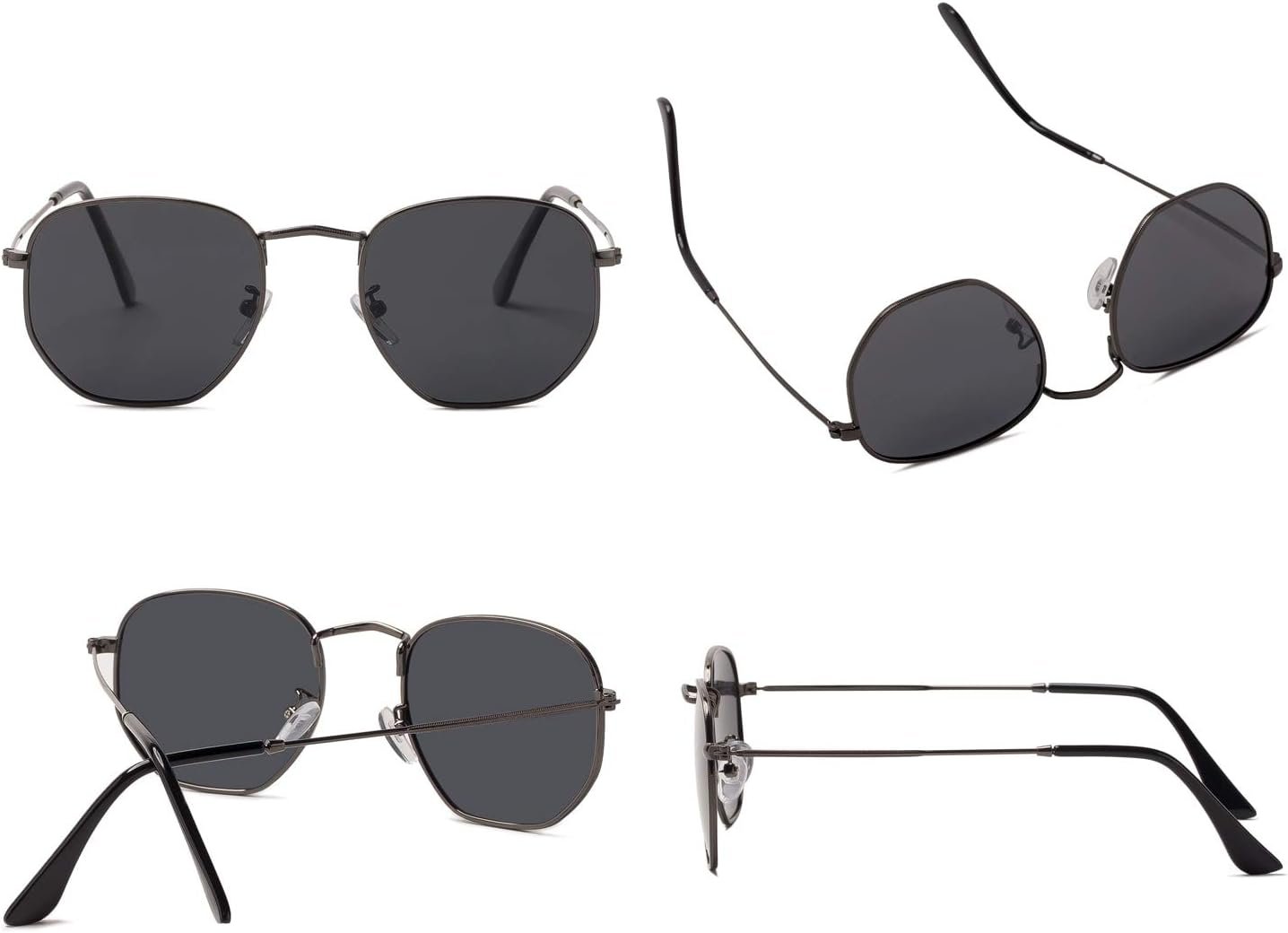 Hipster Hexagonal Polarized Sunglasses Men Women Geometric Square Small Vintage Metal Frame Retro Shade Glasses