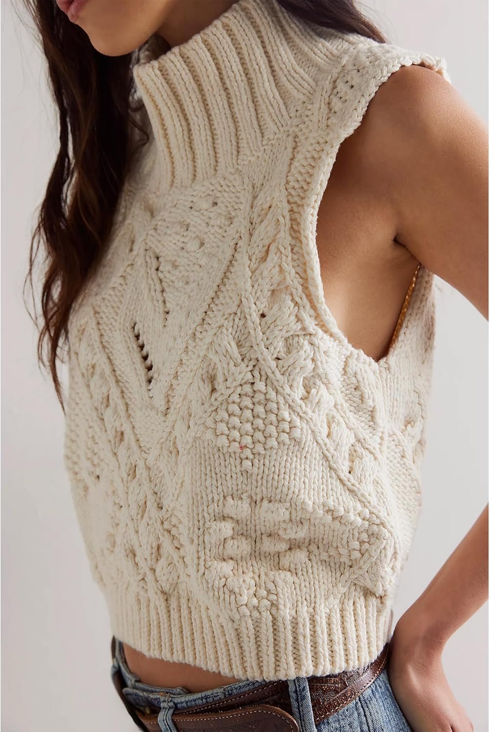 Turtleneck Crochet Sweater Vest