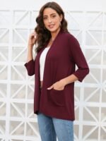 Lightweight Cardigans for Women 3/4 Sleeve Open Front Cardigans with Pockets