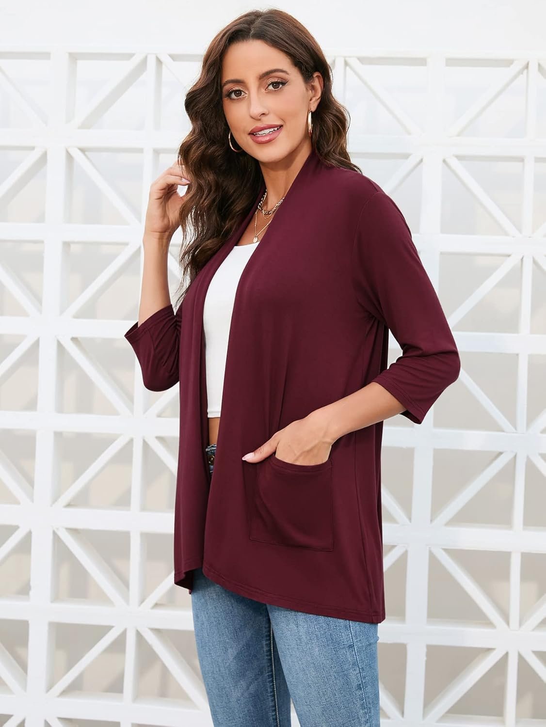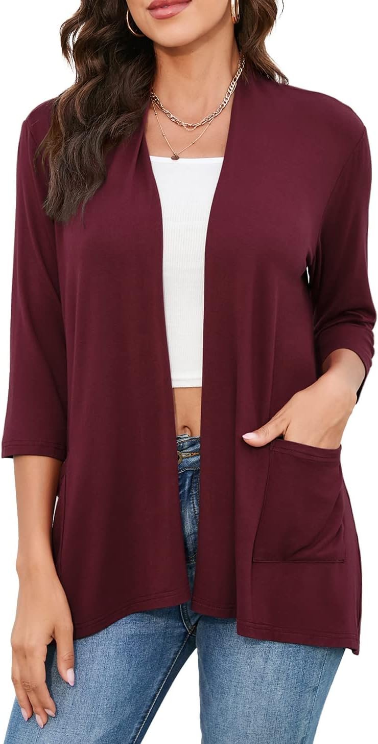 Lightweight Cardigans for Women 3/4 Sleeve Open Front Soft Cardigans with Pockets