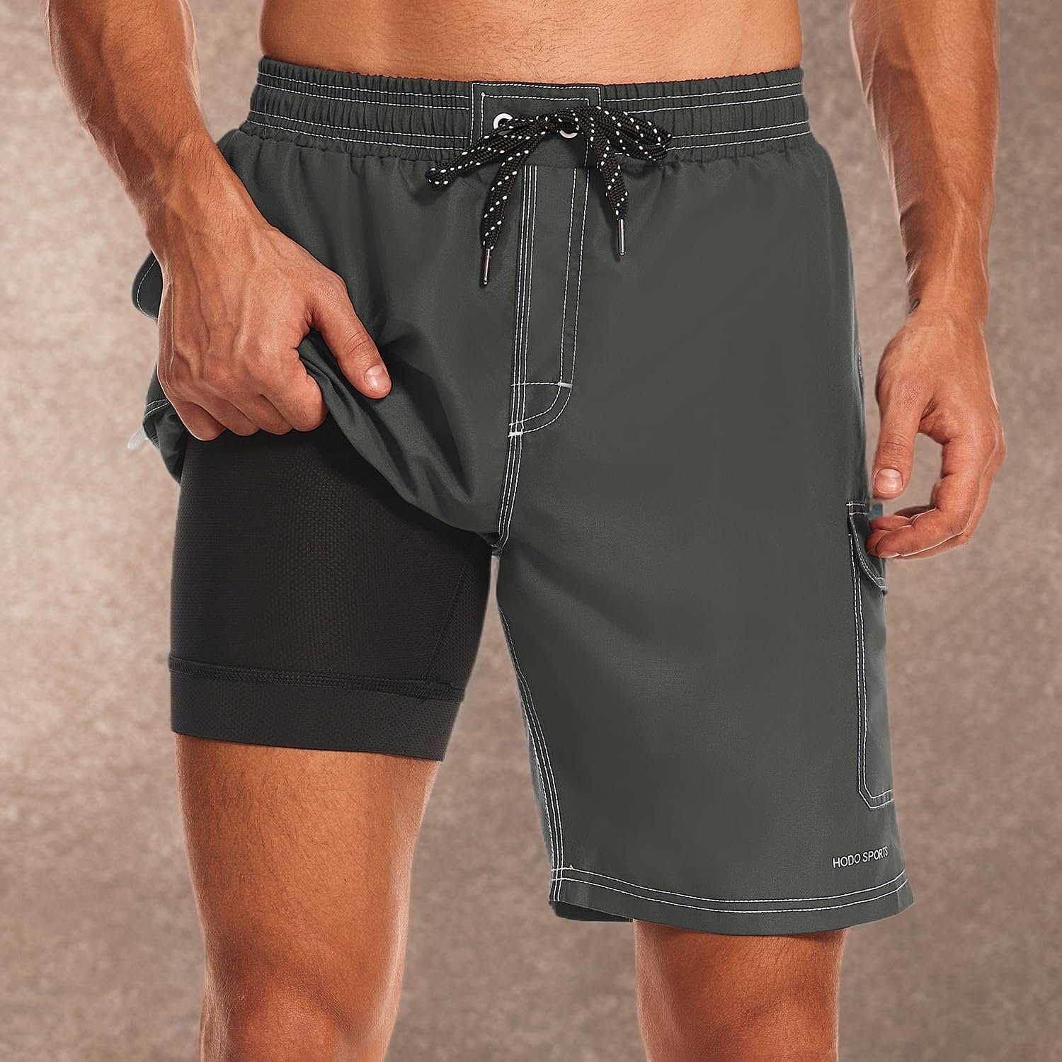 HODOSPORTS Mens Swim Trunks with Compression Liner 9 inch Bathing Suit Quick-Dry Swim Shorts Cargo Pockets S-4XL