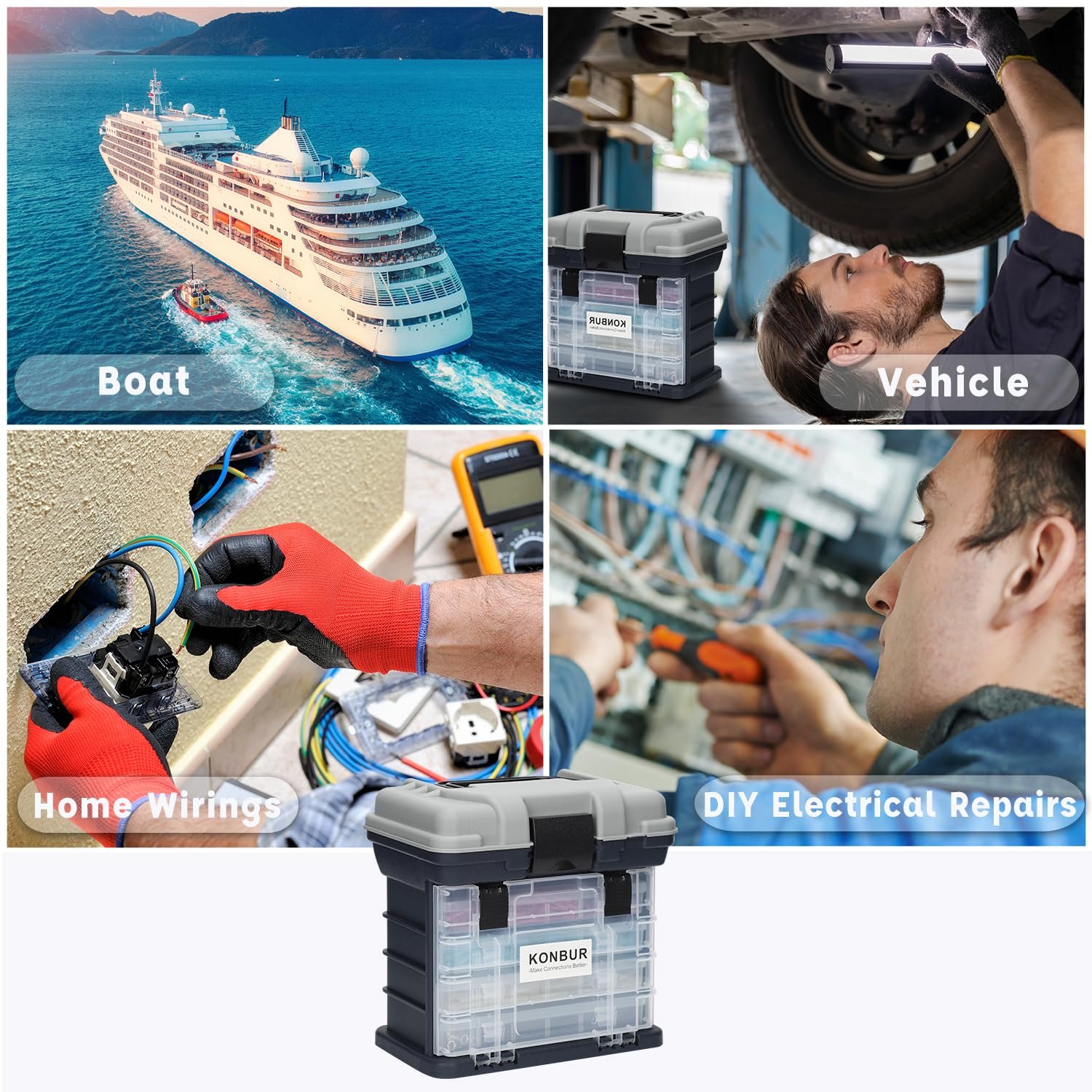 Home Marine Automotive Electrical Connectors Tool Kit Set with Wire Terminals Essential Tools for Connections and Repairs Complete in a Portable Tool Box Organizer with Crimper Stripper
