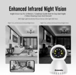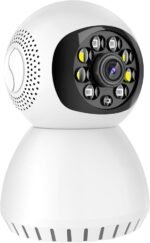 【Smart Pan/Tilt & Night Vision Camera】Indoor Pan/Tilt Smart Security Camera with 115° wide-angle enhanced lens combined with 355° horizontal & 80° vertical rotation range create a complete 360° coverage. 8 pcs IR Leds give you clear Black/White picture in pitch dark up to 5 meters.
