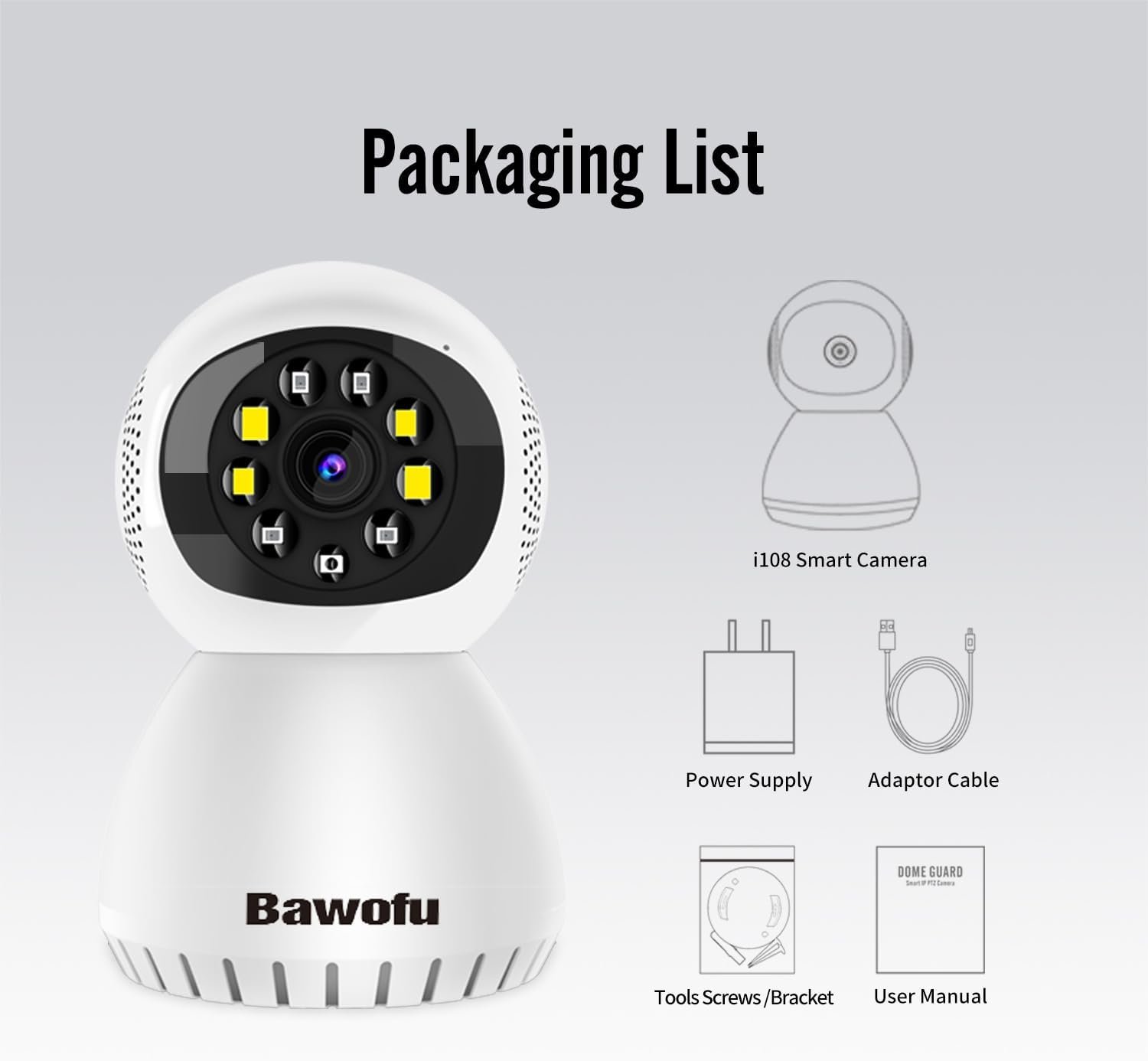 【Real-time Motion Detection Alert】Indoor surveillance camera receive instant alerts on your phone if human, dog motion or abnormal sound detected in your house, just open phone app to check quickly what is going on, the bawofu home camera will not miss any important movements.