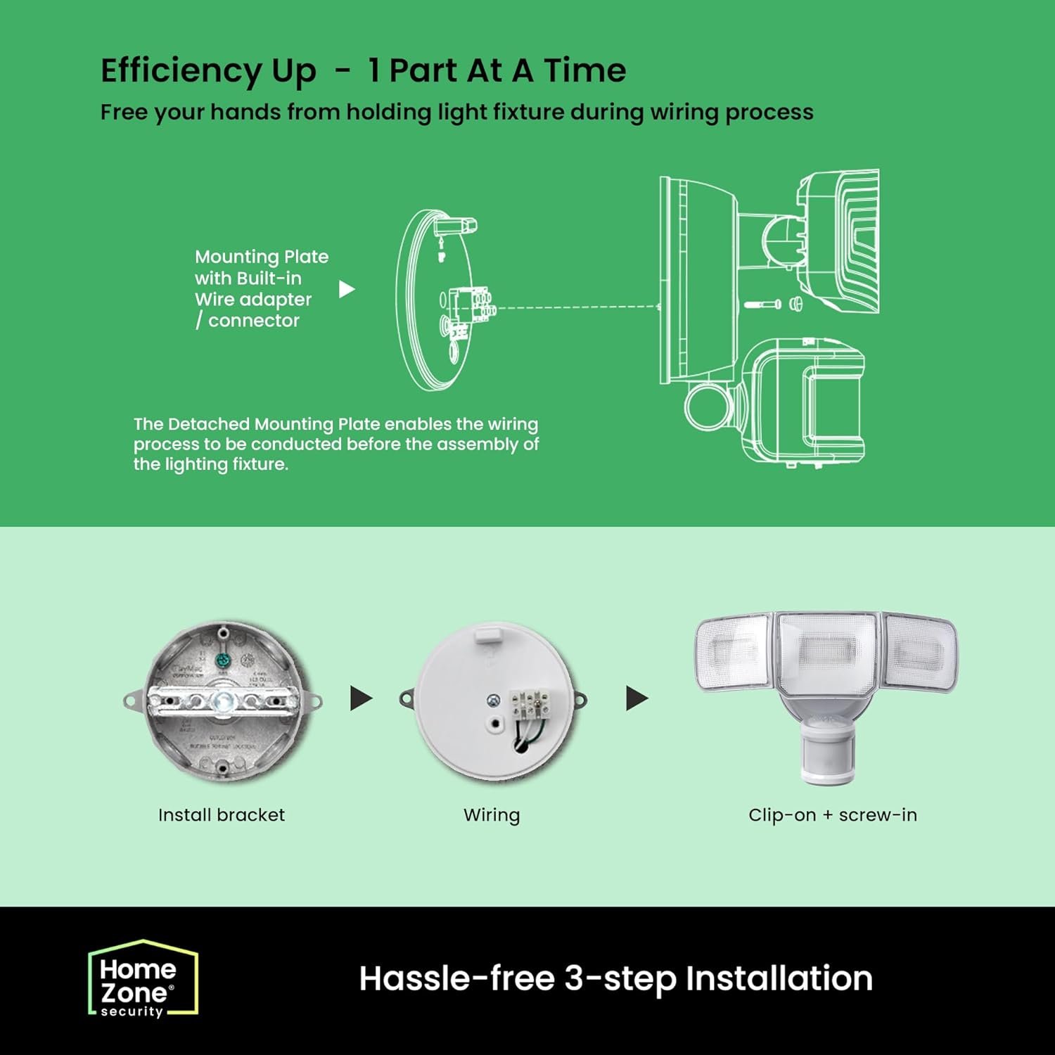 ✔ BUILT TO LAST: This all-new security light series by Home Zone Security shares a robust yet modern light featuring LED light heads built using durable aluminum die casting construction and high impact plastic to withstand outdoor weather conditions.