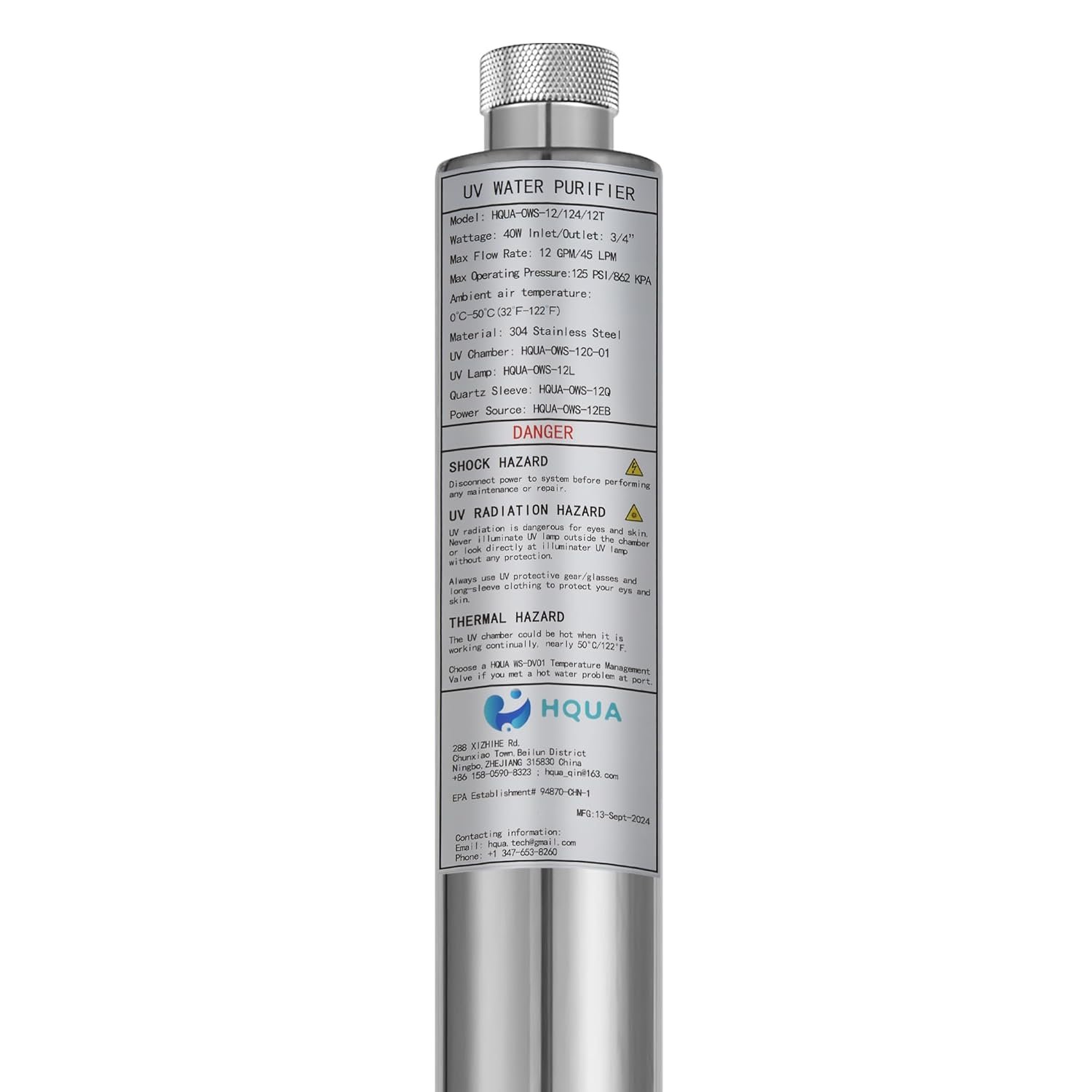 HQUA-OWS-124 UV Water Purifier for Whole House, 12GPM 110V 40W Model + 2 Extra Lamp + 1 Extra Ballast + 1 Extra Quartz Sleeve