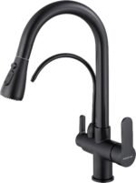 HUAHUALALA Matte Black Kitchen Sink Faucets with Pull Down Sprayer,Drinking Water Faucet,Modern Dual Handle 3-in-1 High Arc Water Filter Purifier Faucet for Reverse Osmosis or Water Filtration System