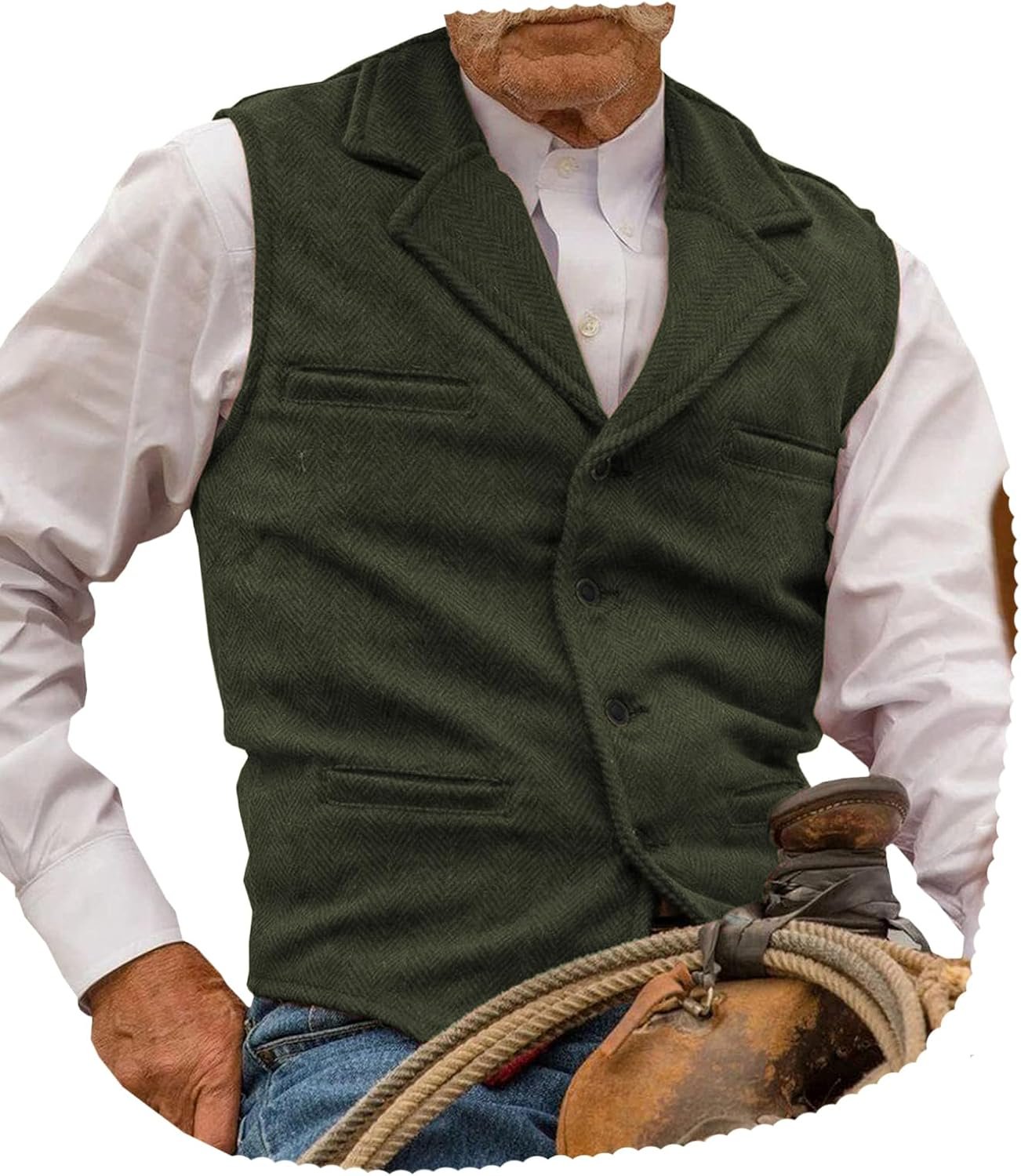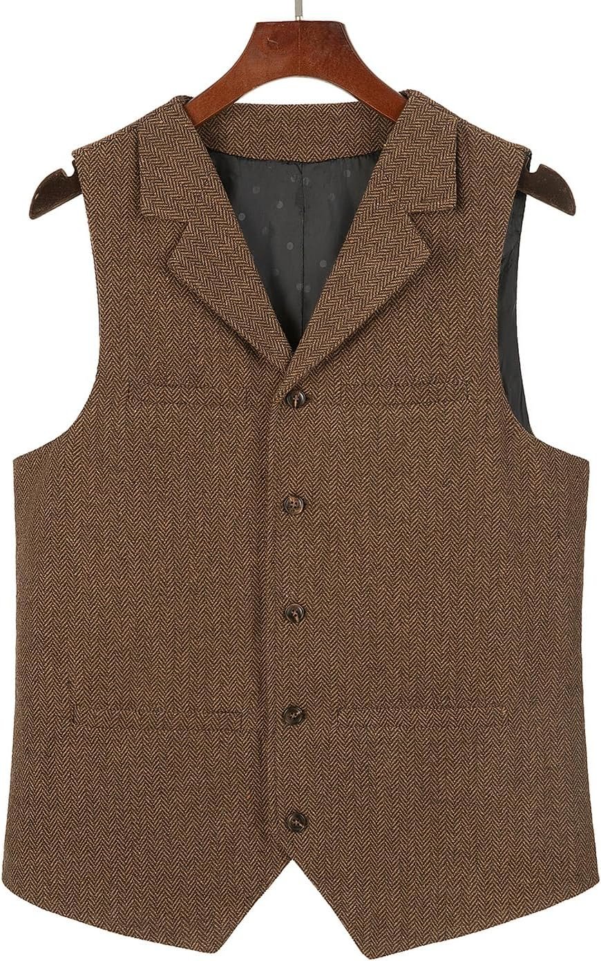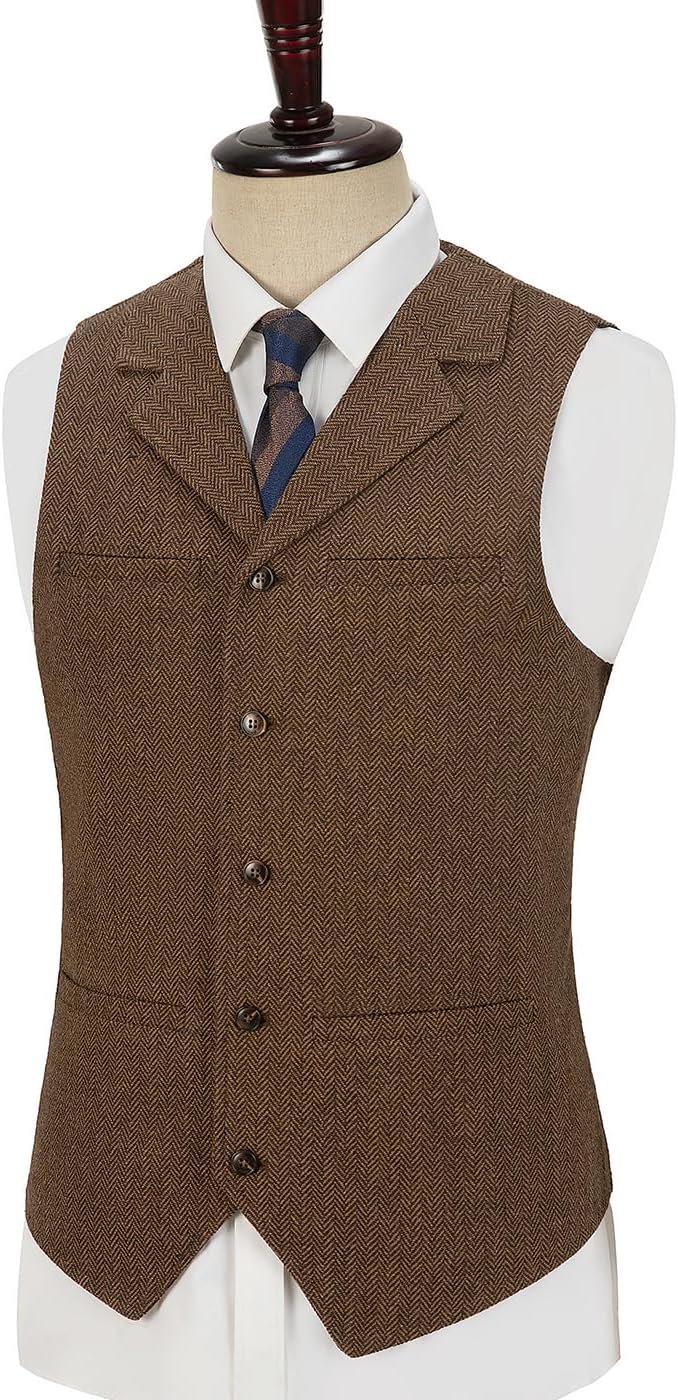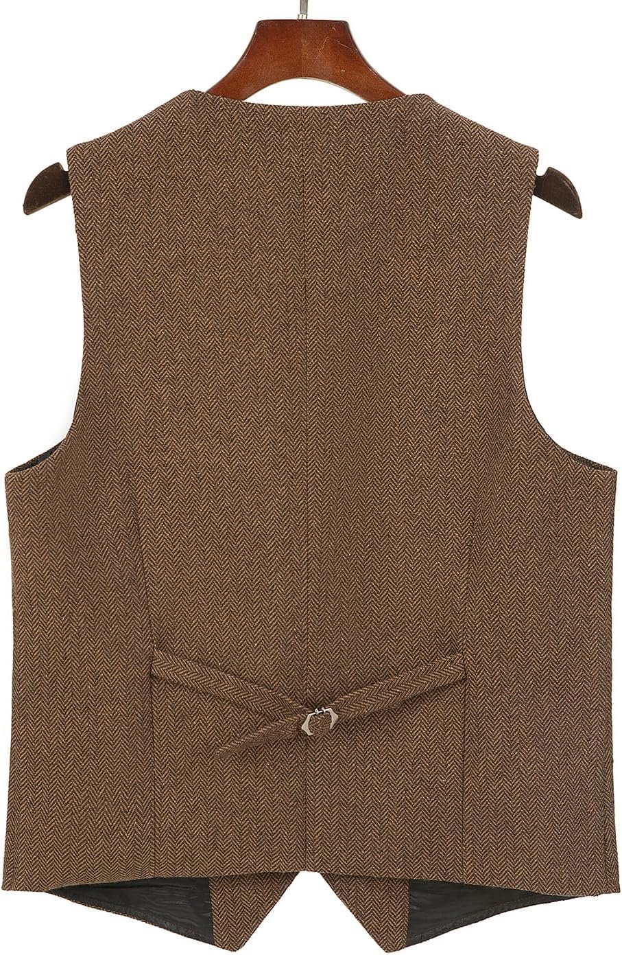 Hunting Aged Mens Tweed Vests Herringbone Waistcoats Retro Casual Wedding Wool Business Vests