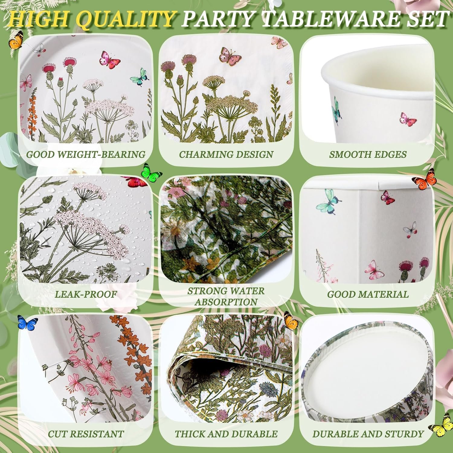 Exquisite Design: our party supplies set features spring flowers and butterflies as the theme elements, bringing the beauty of spring to your spring party; The exquisite red and green flowers on it are exquisitely designed, and you will appreciate its interesting design; This party set is the nice complement to any spring celebration event