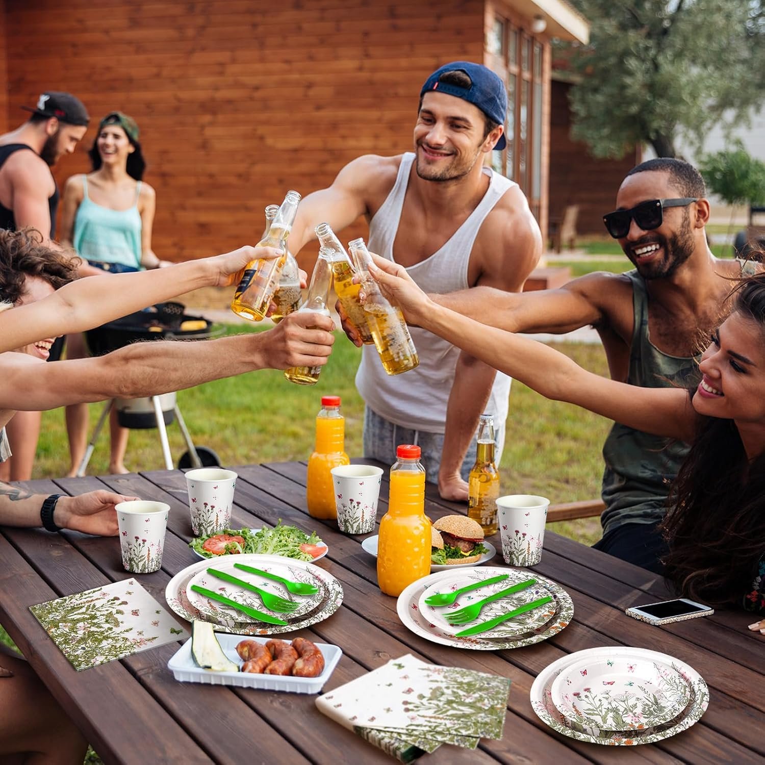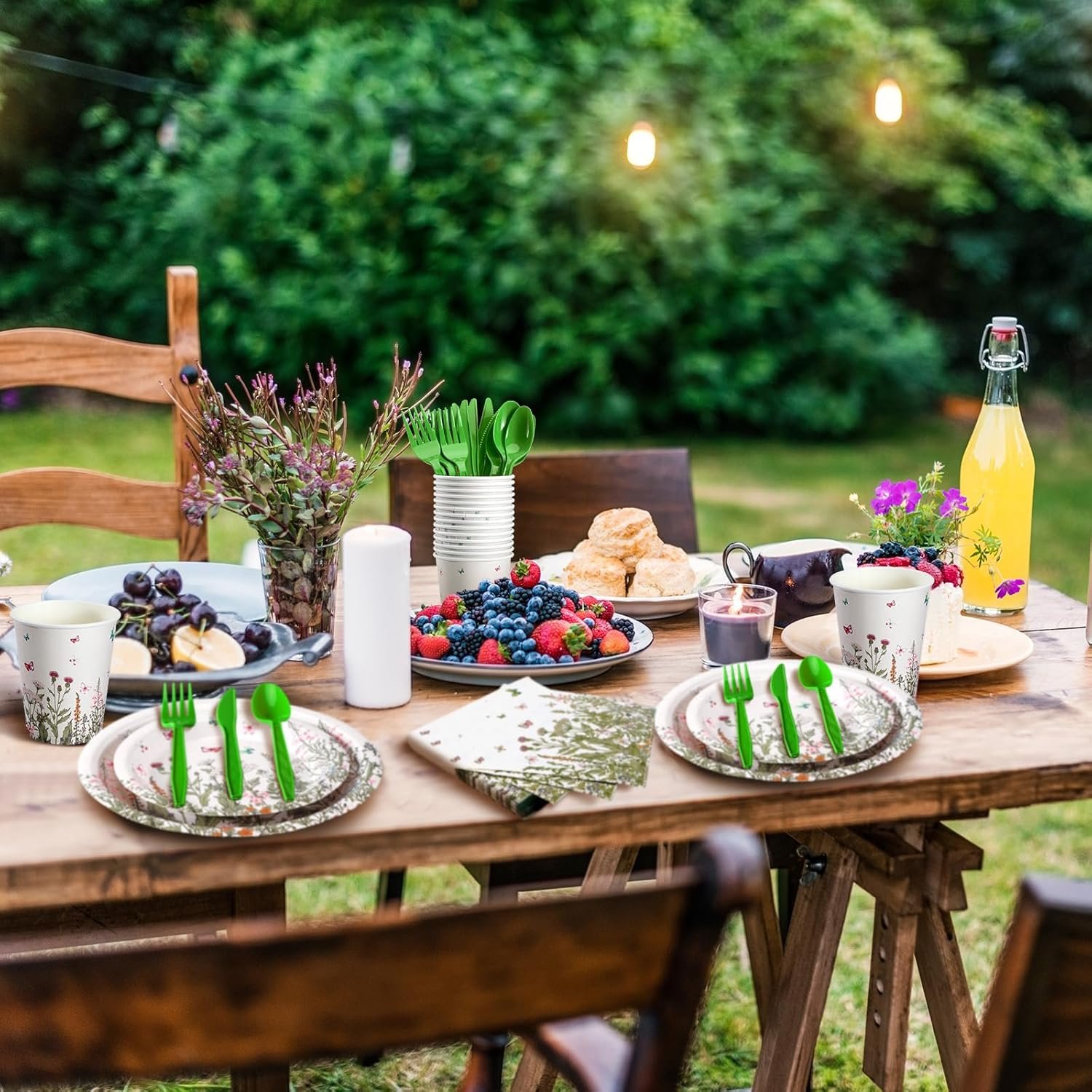 Wide Application: reserving this set of disposable plates, cups, and napkins to ensure you have enough time to attend spring brunch, afternoon tea, baby showers, garden parties, bridal showers, and other themed birthday parties with friends and family; Provide guests with meals, buffets, light meals, event or daily meals, perfectly matched with other party decorations