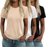 The 3 pack women’s short sleeve t shirts include various solid color crew neck shirts, making it easy to mix and match for everyday wear.