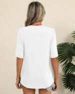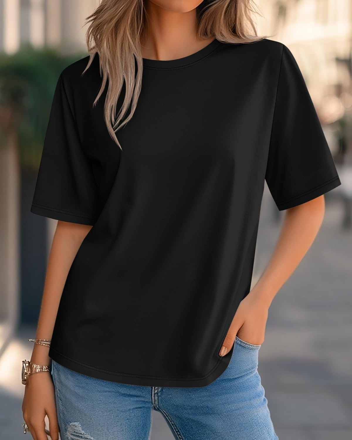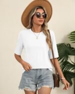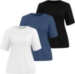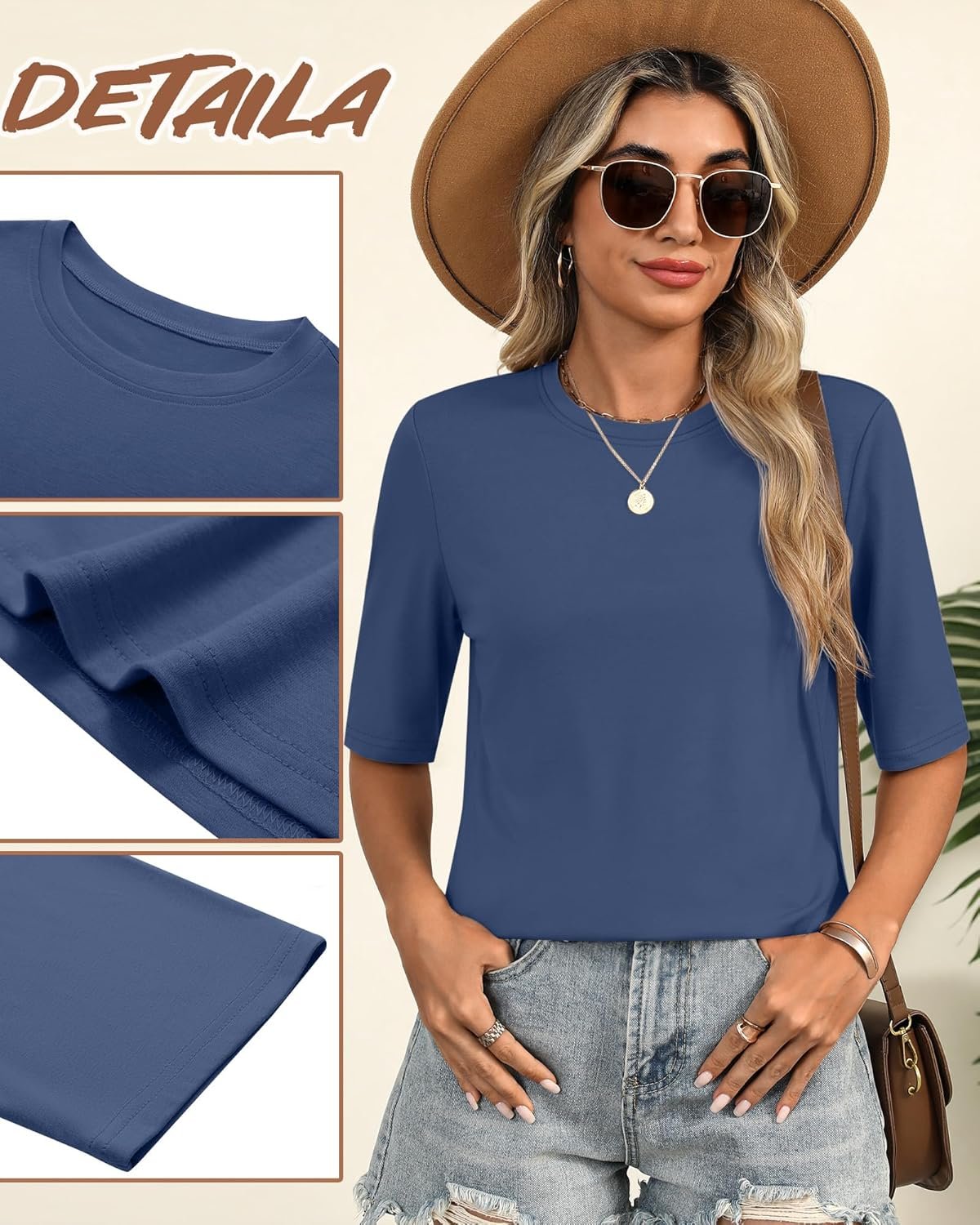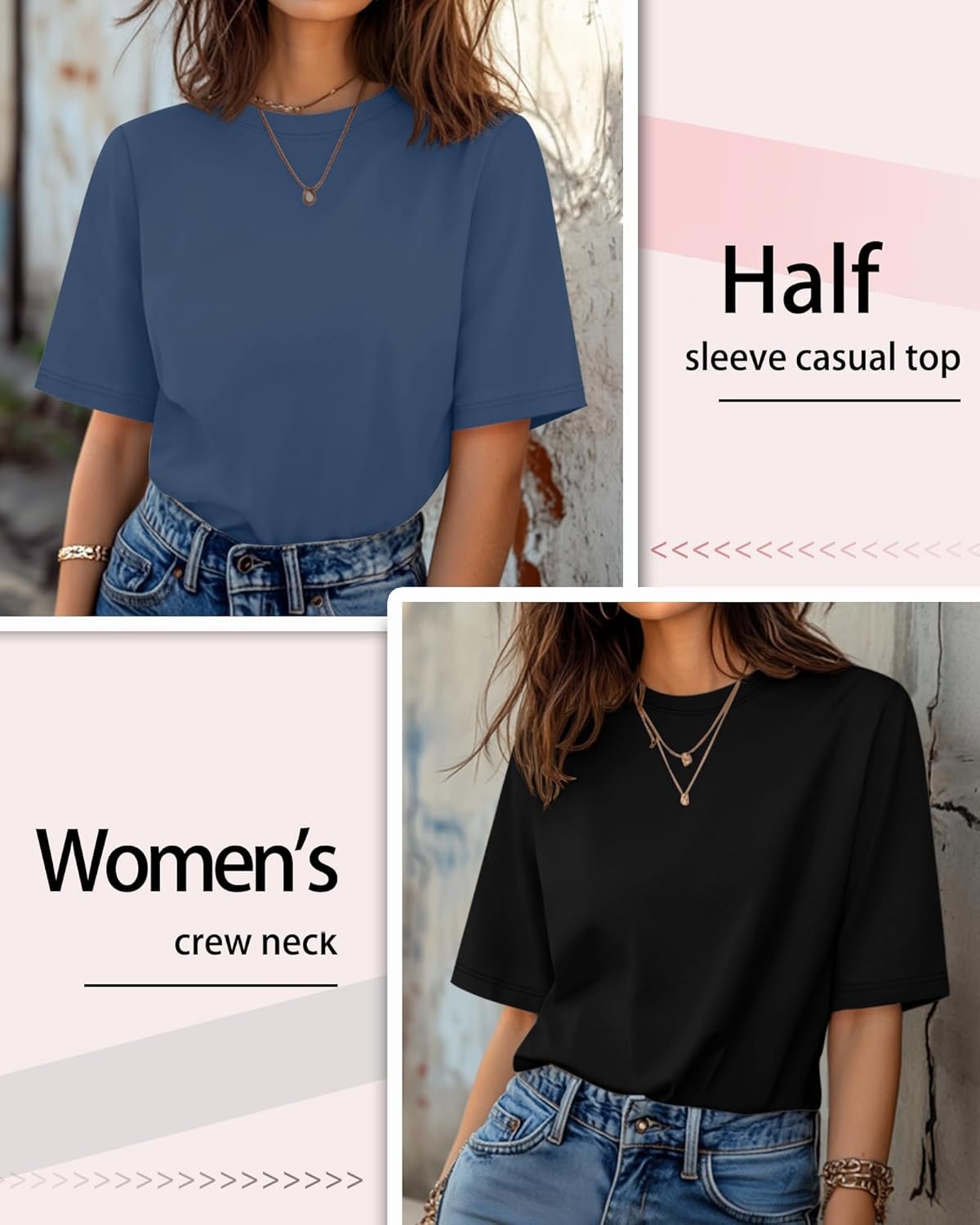 Huukeay 3 Pack Women’s Half Sleeve T-Shirts, Crew Neck Elbow Length Tops Loose Casual Basic Tees Summer Cotton Tunic Tops