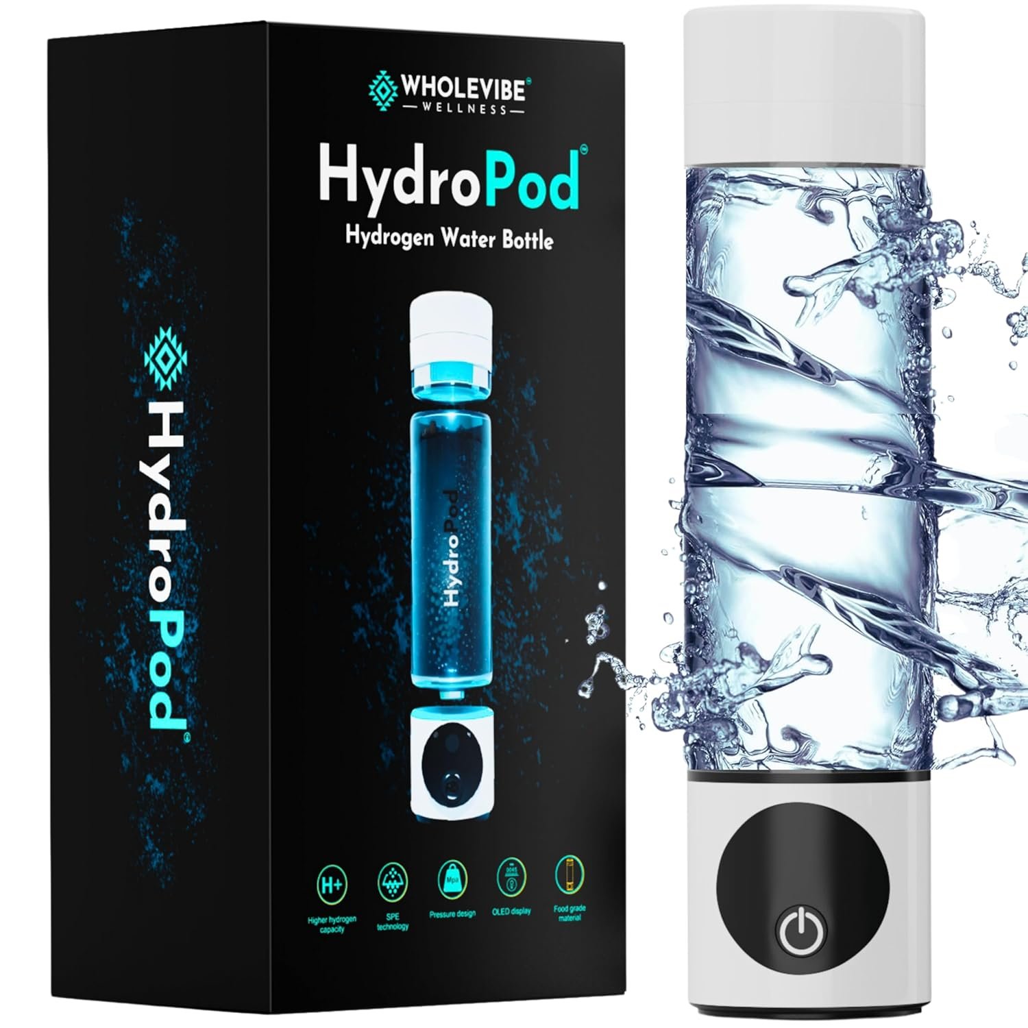HydroPod Premium Hydrogen Water Bottle Generator – Advanced HydroHealth Hydrogenated Water Machine & Ionizer – Smart Portable Water Purifier & Filtered Hydro Water Bottle