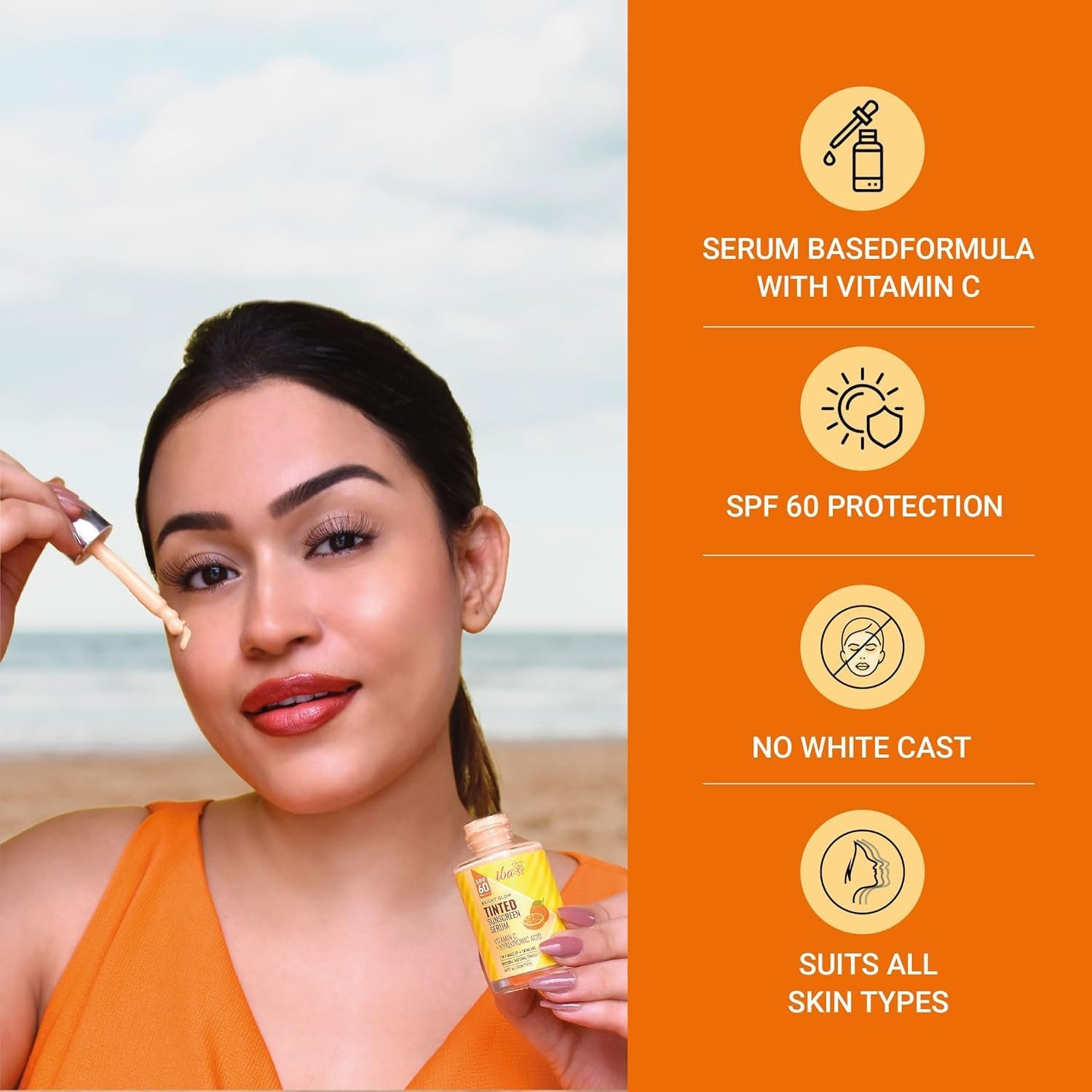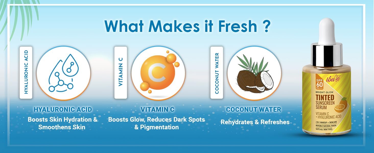Iba Bright Glow Tinted Sunscreen Serum for All Skin Types SPF 60 PA++++ with Hyaluronic Acid & Vitamin C, 30ml | Broad Spectrum- UVA & UVB Protection | For Glowing & Sun-Safe Skin | No White Cast