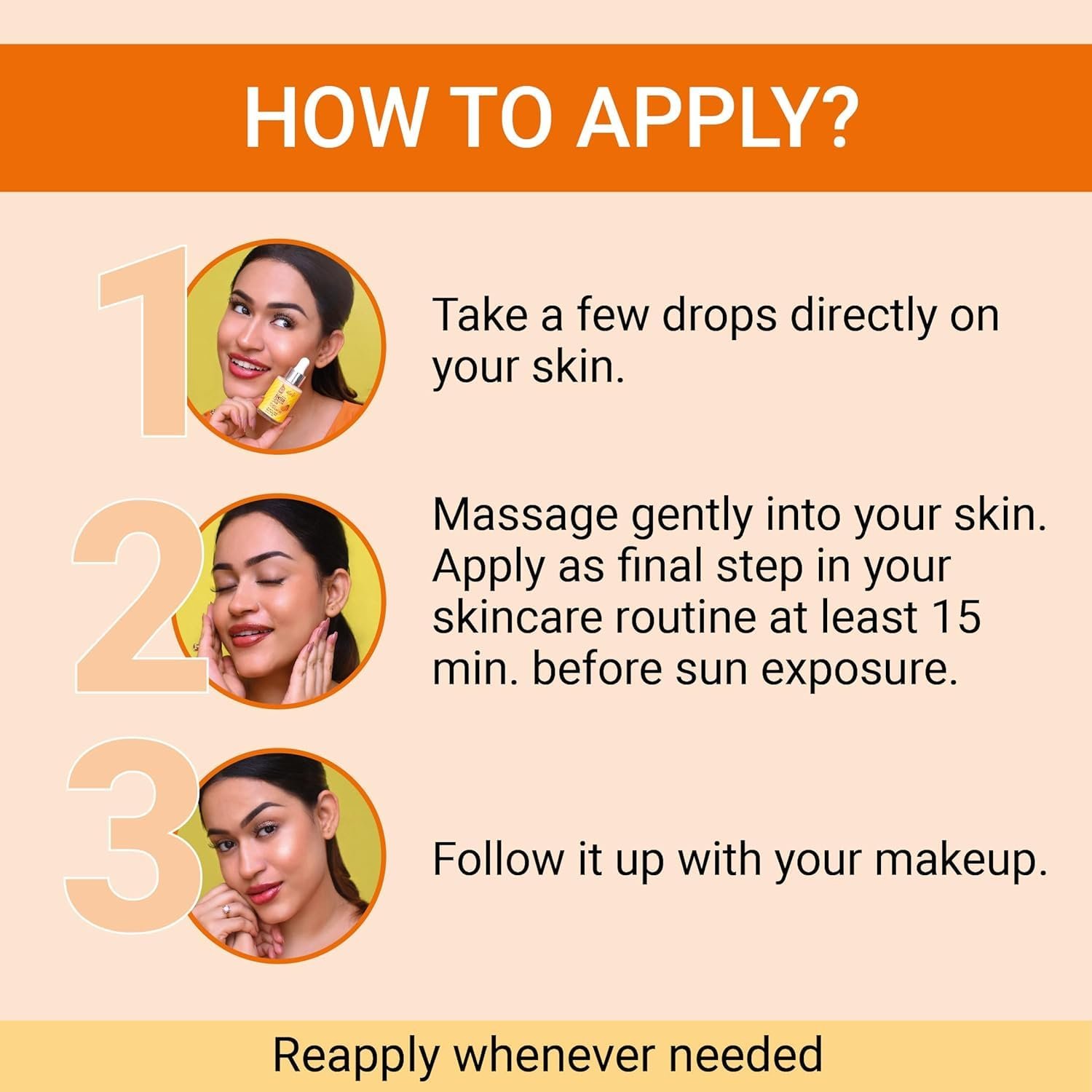 How to Apply: Apply as a final step of your skincare routine and then you can follow it up with your makeup. Make sure to apply your sunscreen at least 15 minutes before stepping out.
