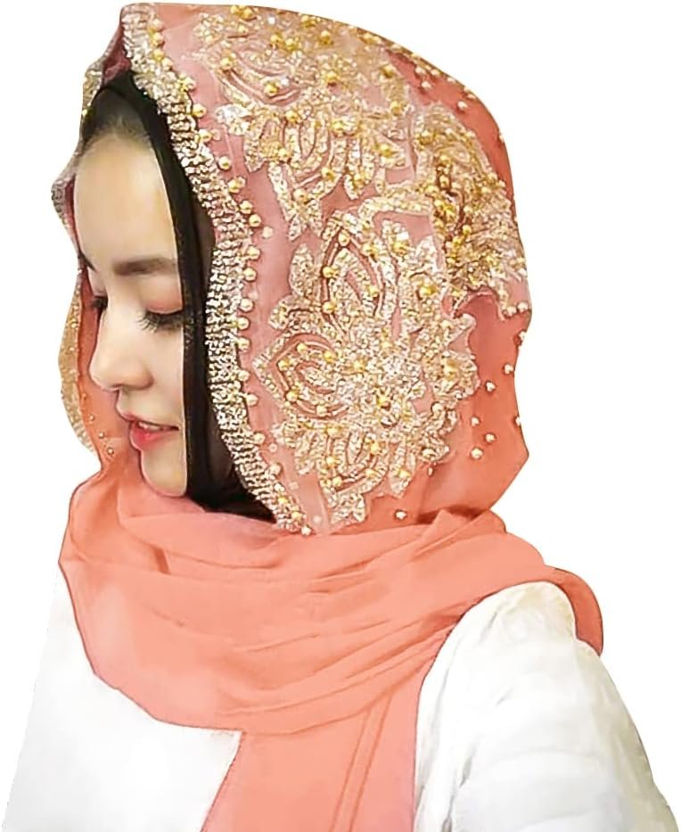 Ibluelover Women Muslim Chiffon Hijab Shawl Soft Rhinestone Long Scarf Breathable Dubai Hijab Head Wrap Scarf Fashion Turban