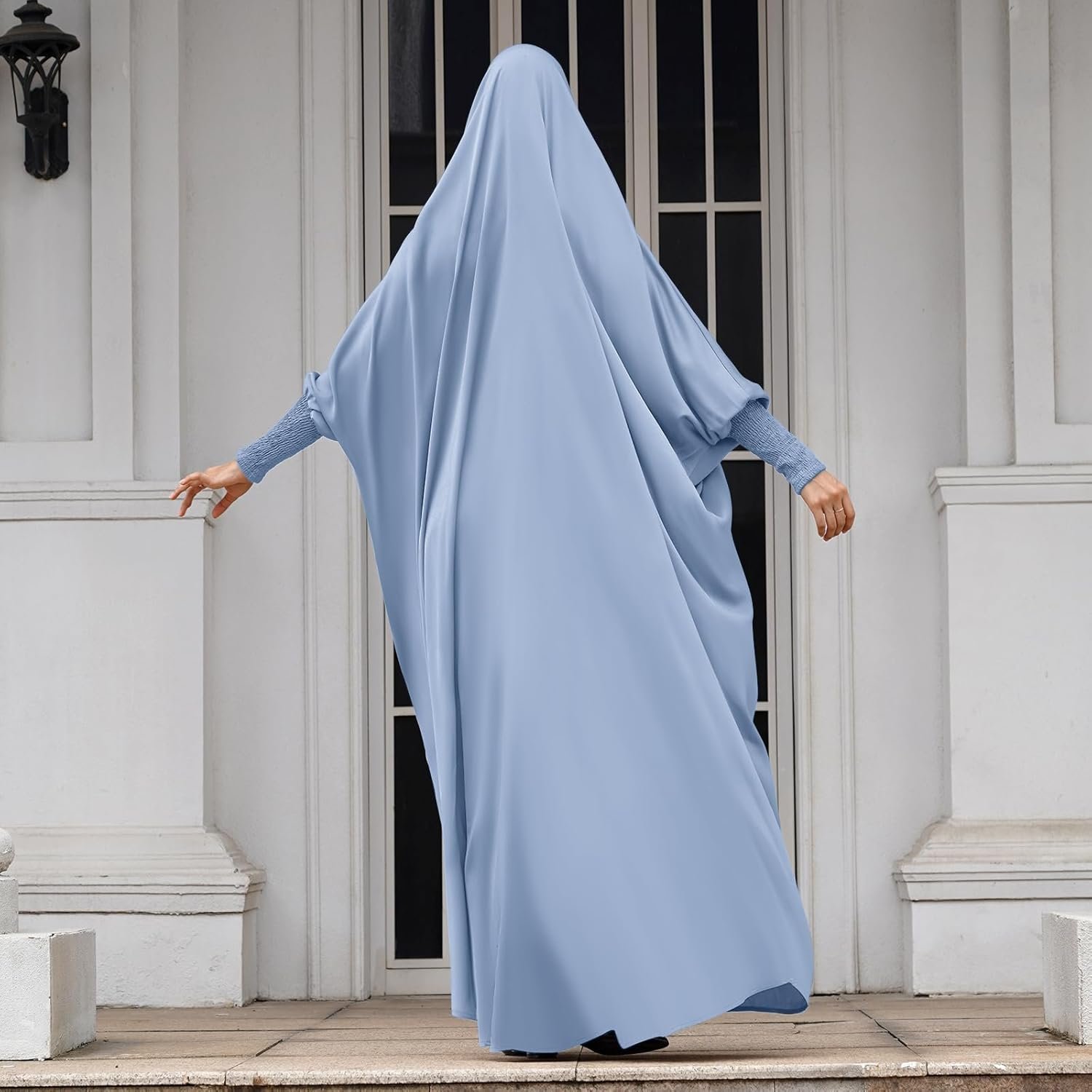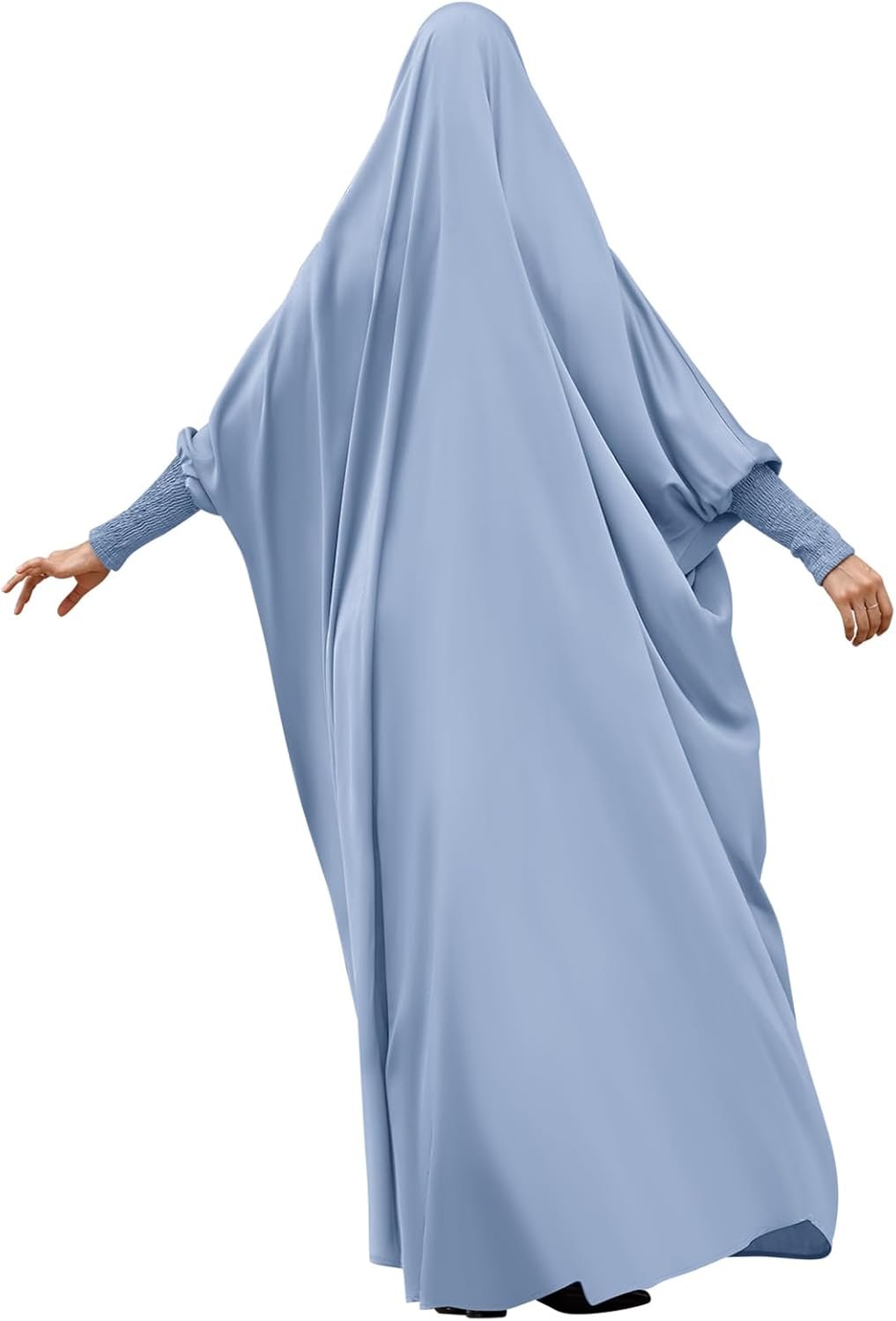 IDOPIP Muslim Abaya for Women One Piece Long Sleeve Islamic Prayer Dress with Hooded Hijab Maxi Kaftan Robe Modest Clothes