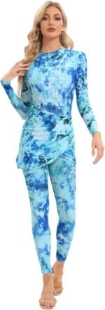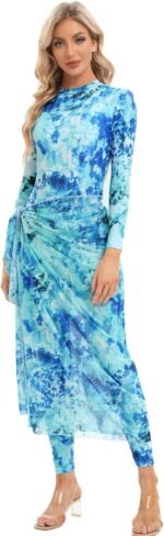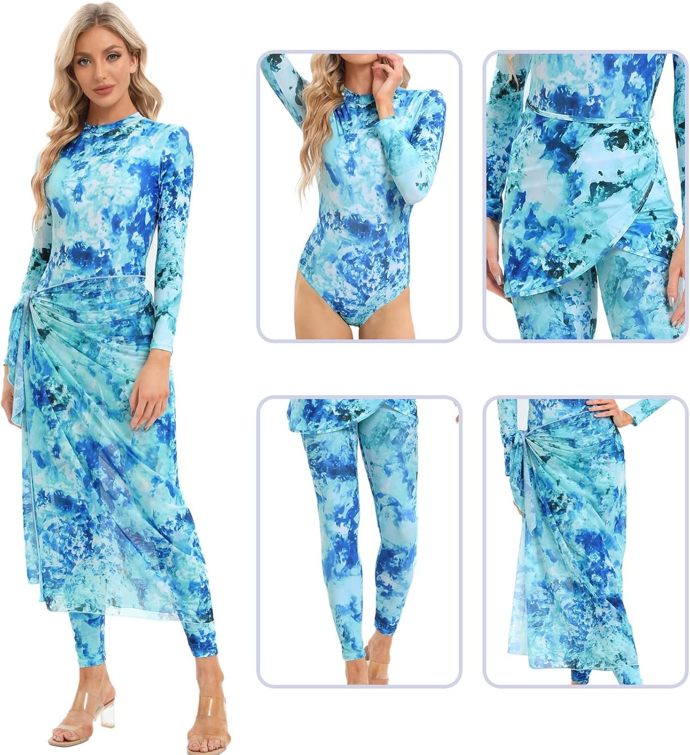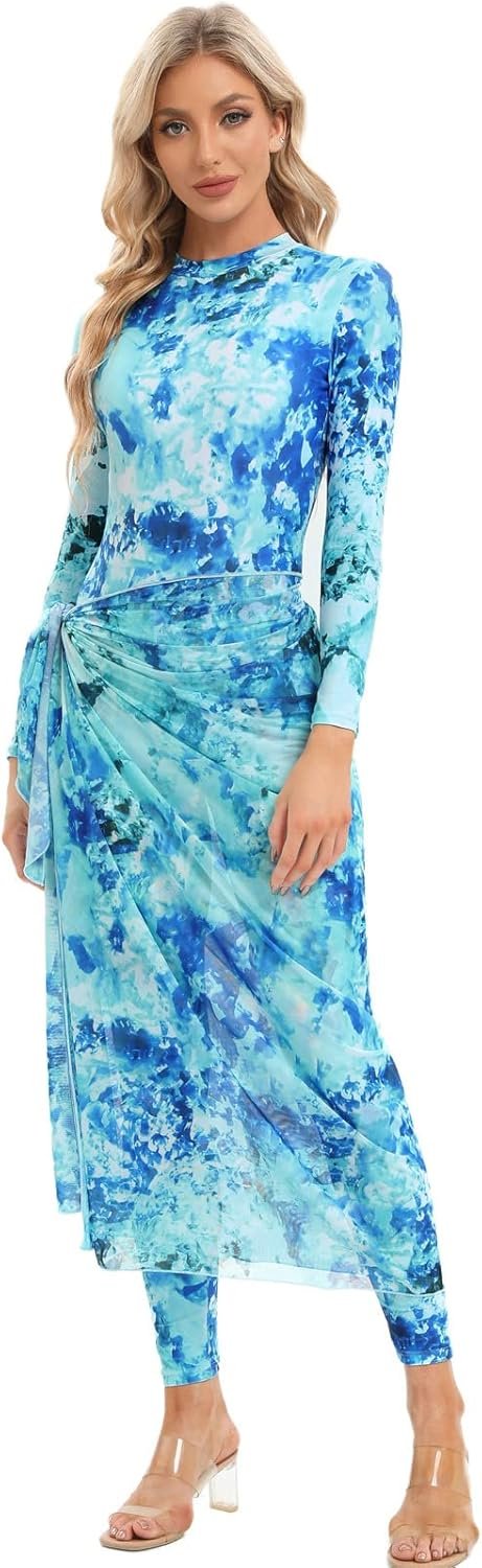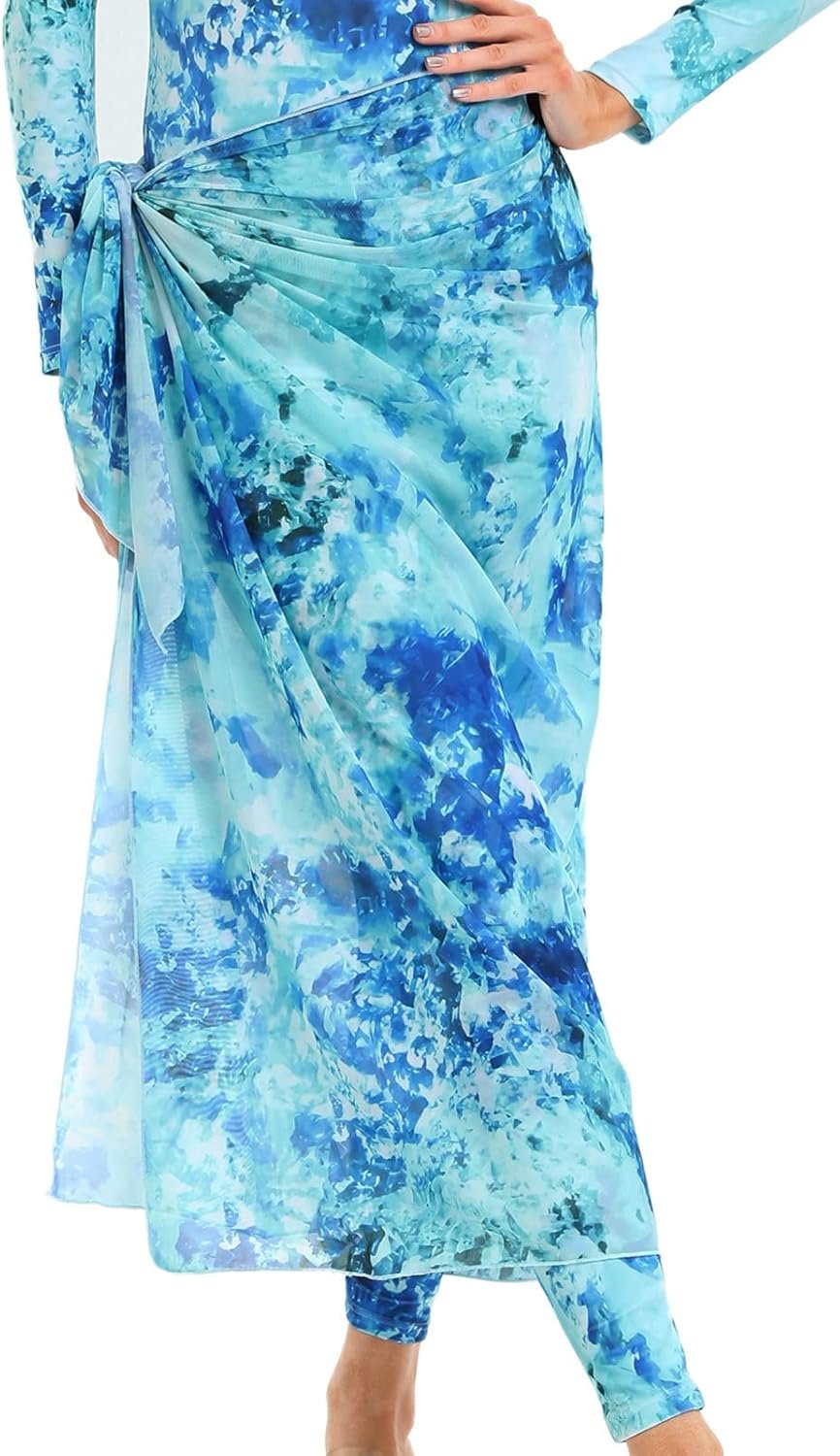 Customers find the swimwear to have good fabric quality, true to size, and a stylish design. They appreciate the long cover skirt that enhances the look. The sarong-style piece matches perfectly and can be used as a head covering.
