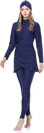 IDOPIP Muslim Burkini Swimsuits for Women Modest Swimwear Islamic Long Sleeve Full Cover Hijab Top Pants 3PCS Bathing Suit